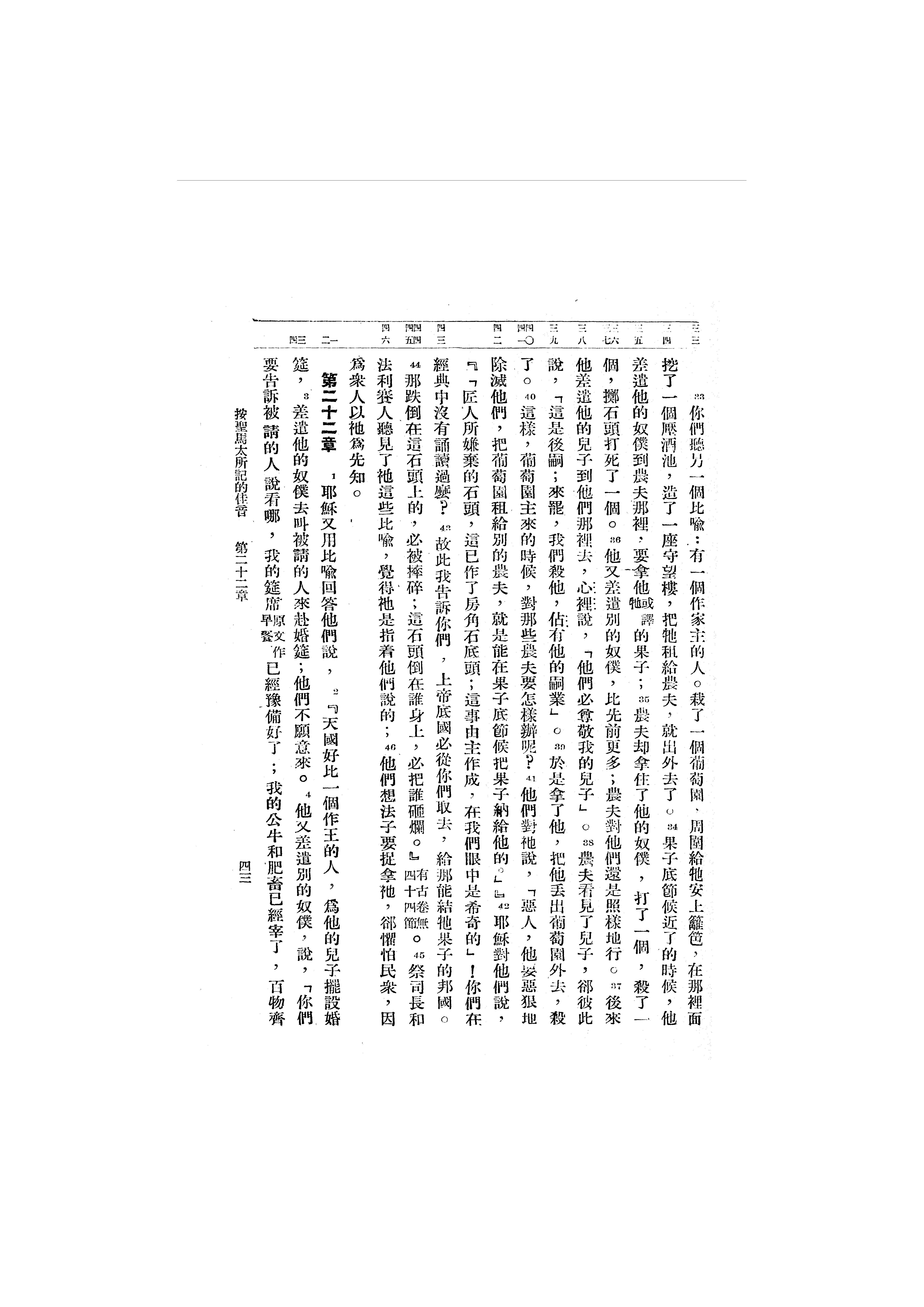 1946年呂振中譯新約初稿 馬太福音 21 章 33 節到 22 章 4 節