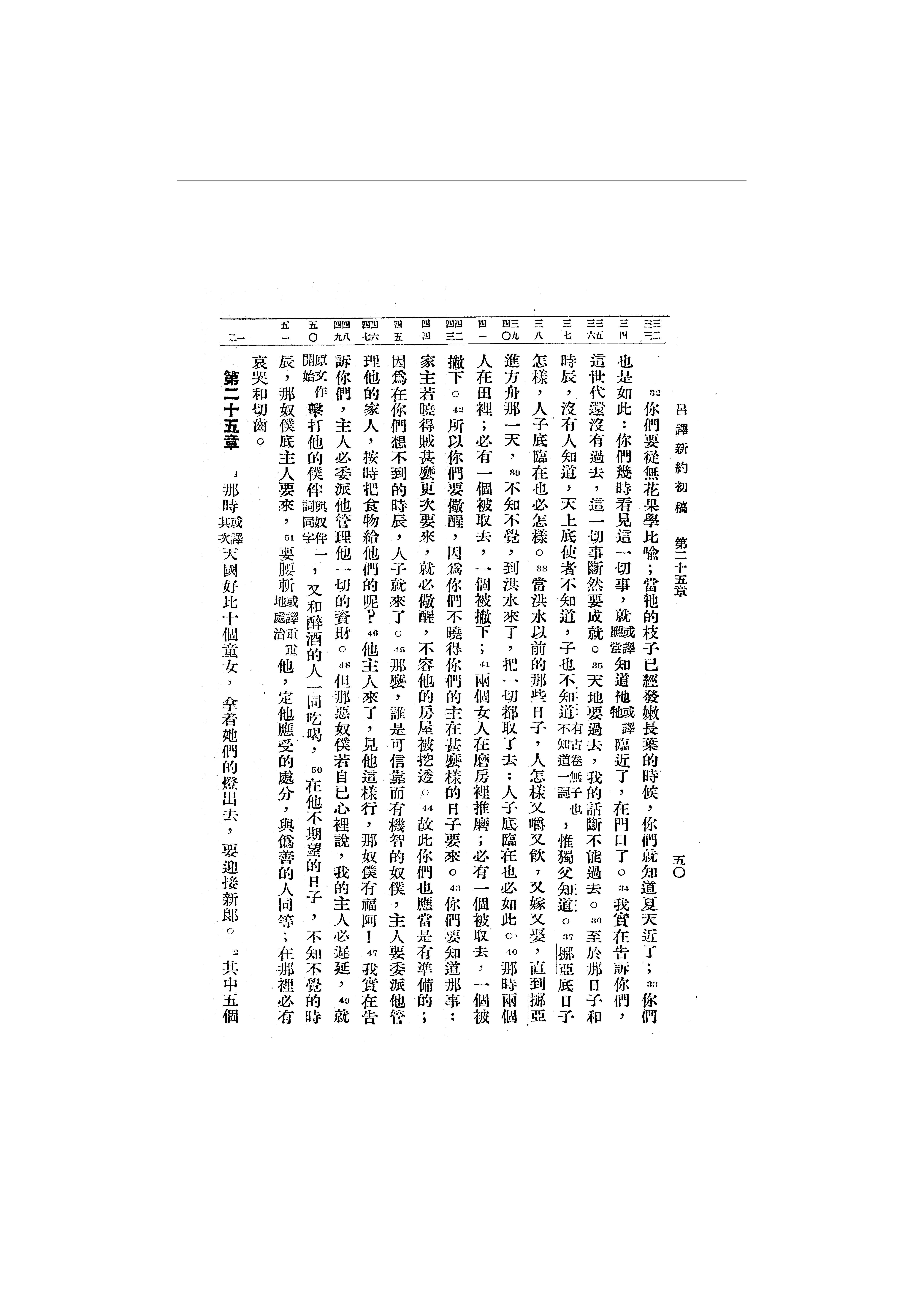 1946年呂振中譯新約初稿 馬太福音 24 章 32 節到 25 章 2 節