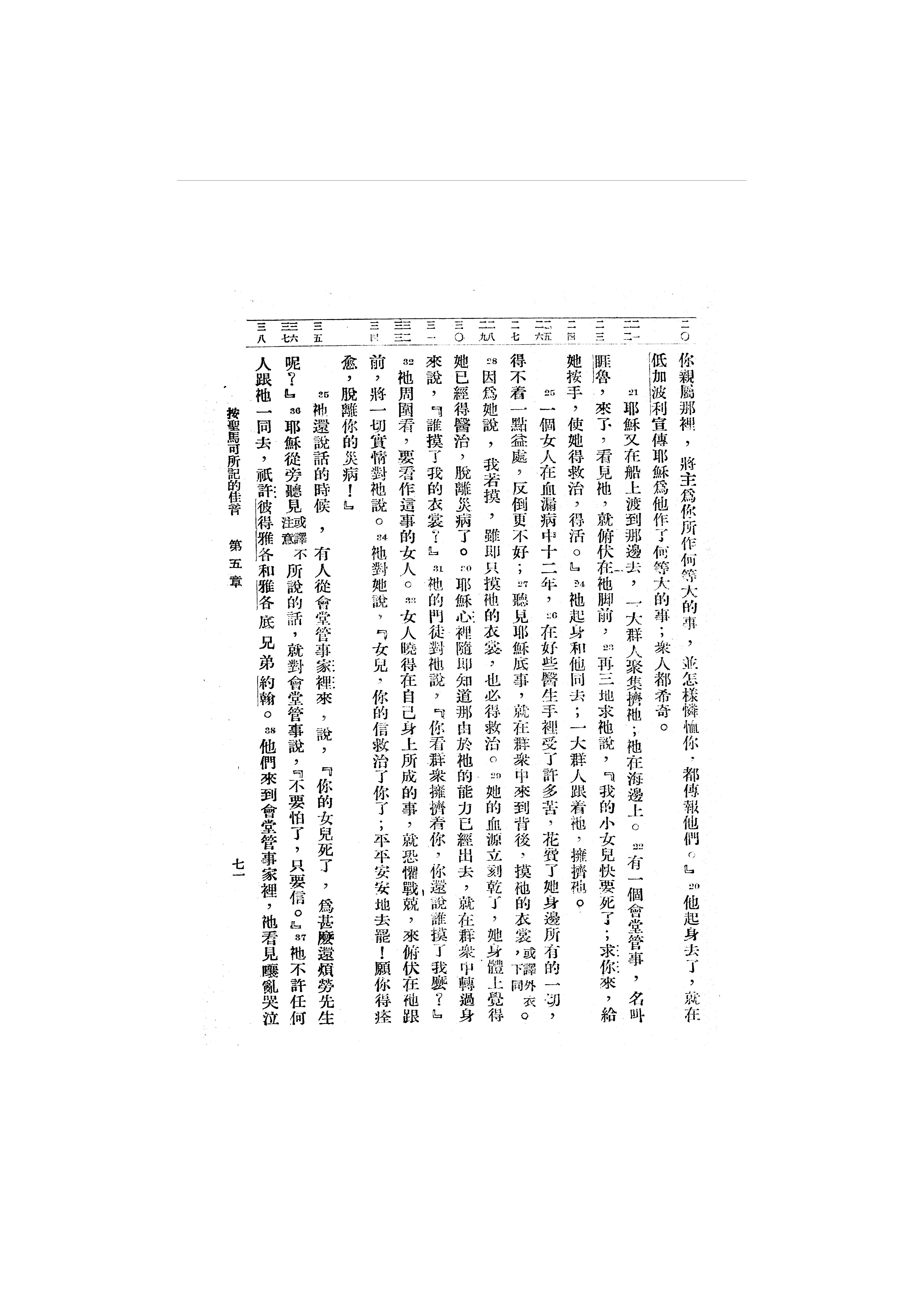 1946年呂振中譯新約初稿 馬可福音 5 章 20 節到 5 章 38 節