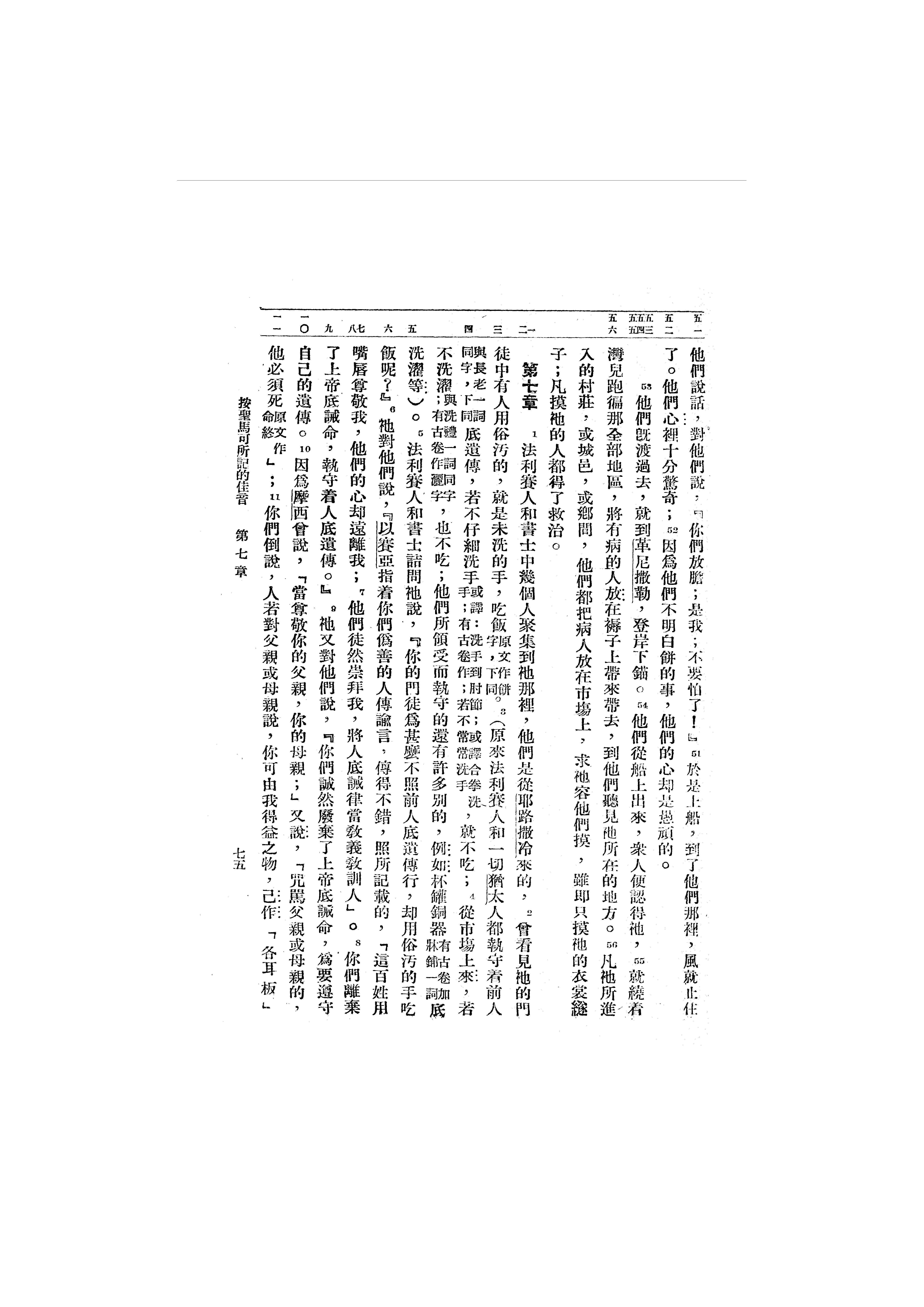 1946年呂振中譯新約初稿 馬可福音 6 章 51 節到 7 章 11 節