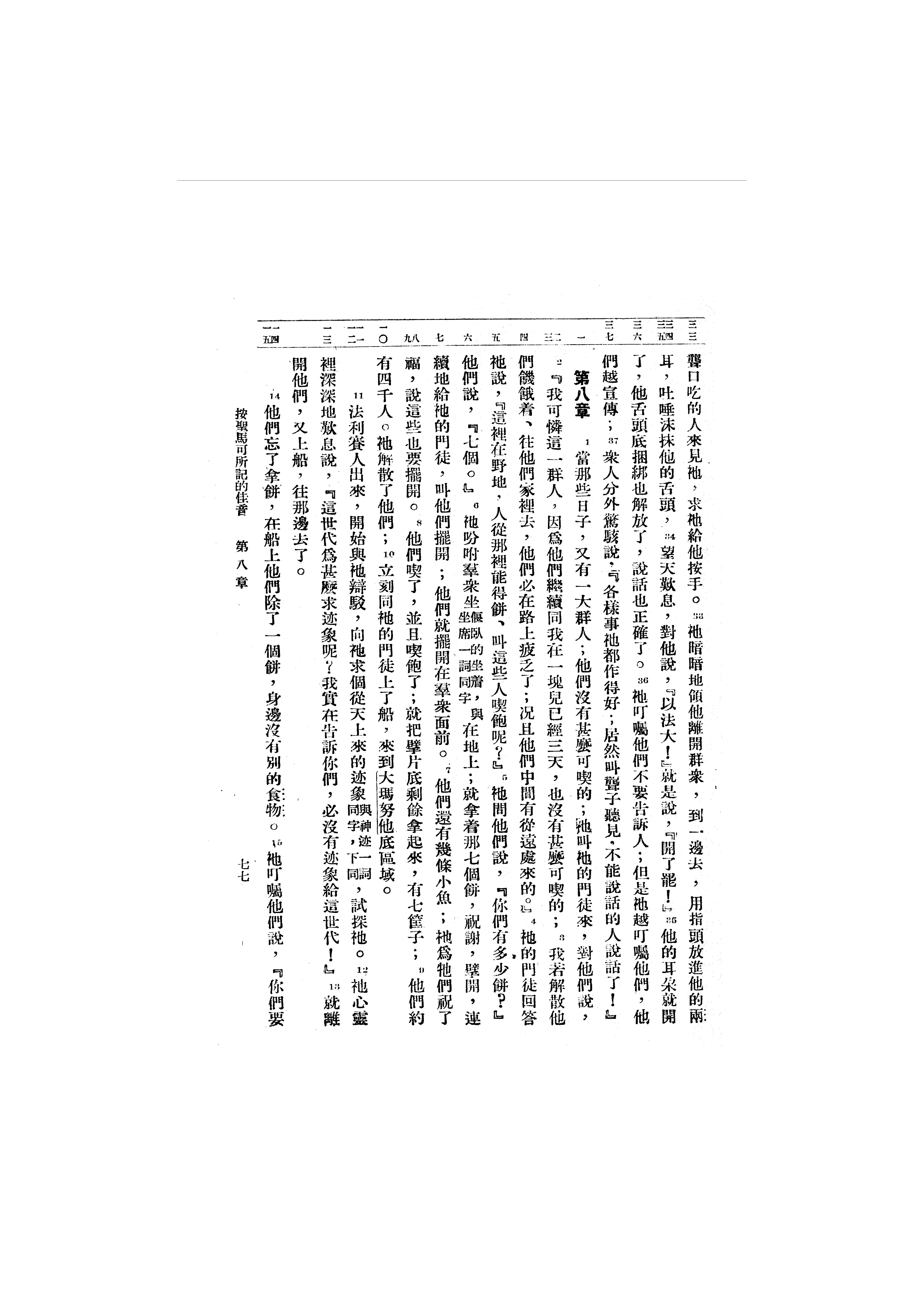 1946年呂振中譯新約初稿 馬可福音 7 章 33 節到 8 章 15 節