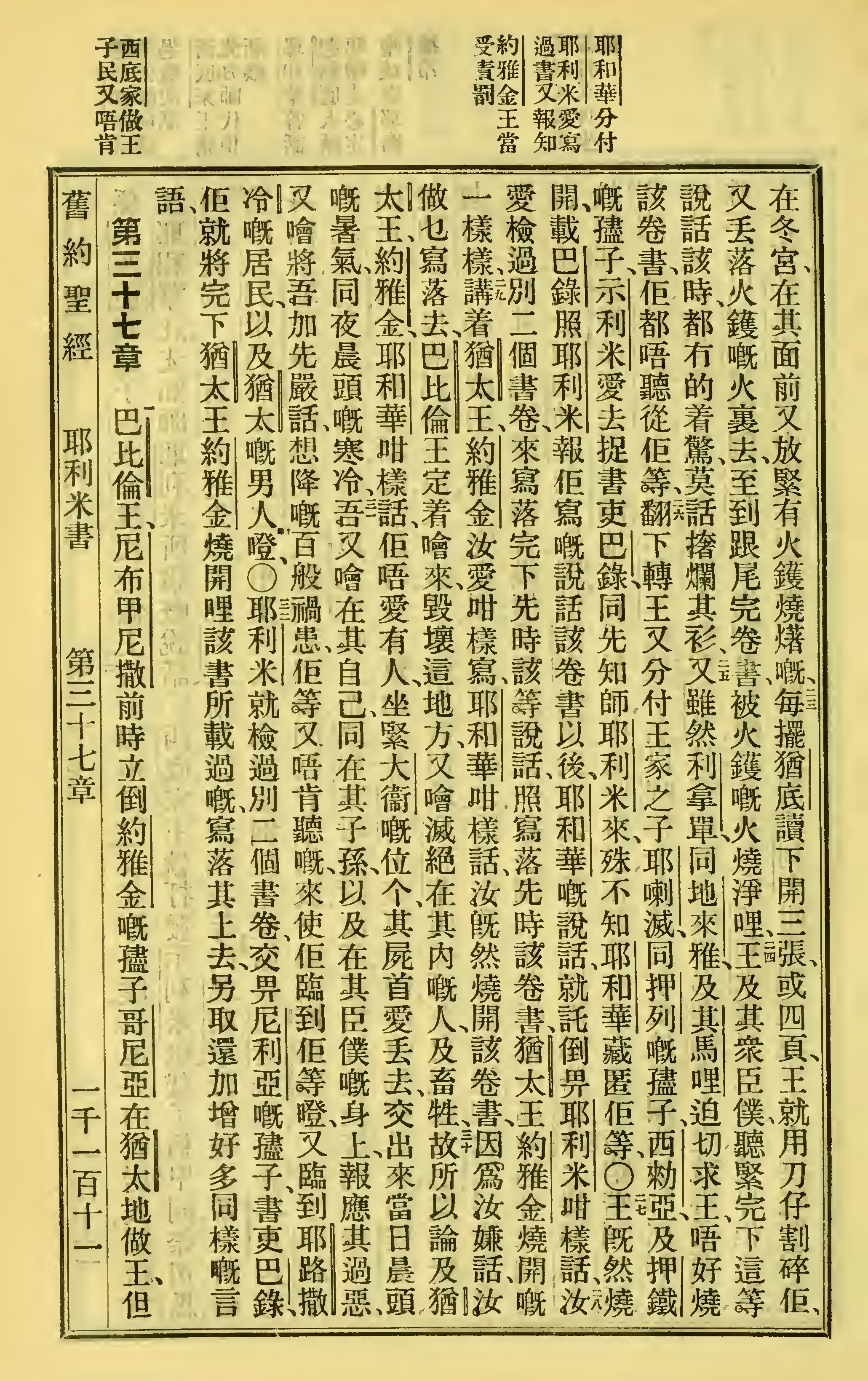 1923年聖經全書 耶利米書 36 章 23 節到 37 章 1 節