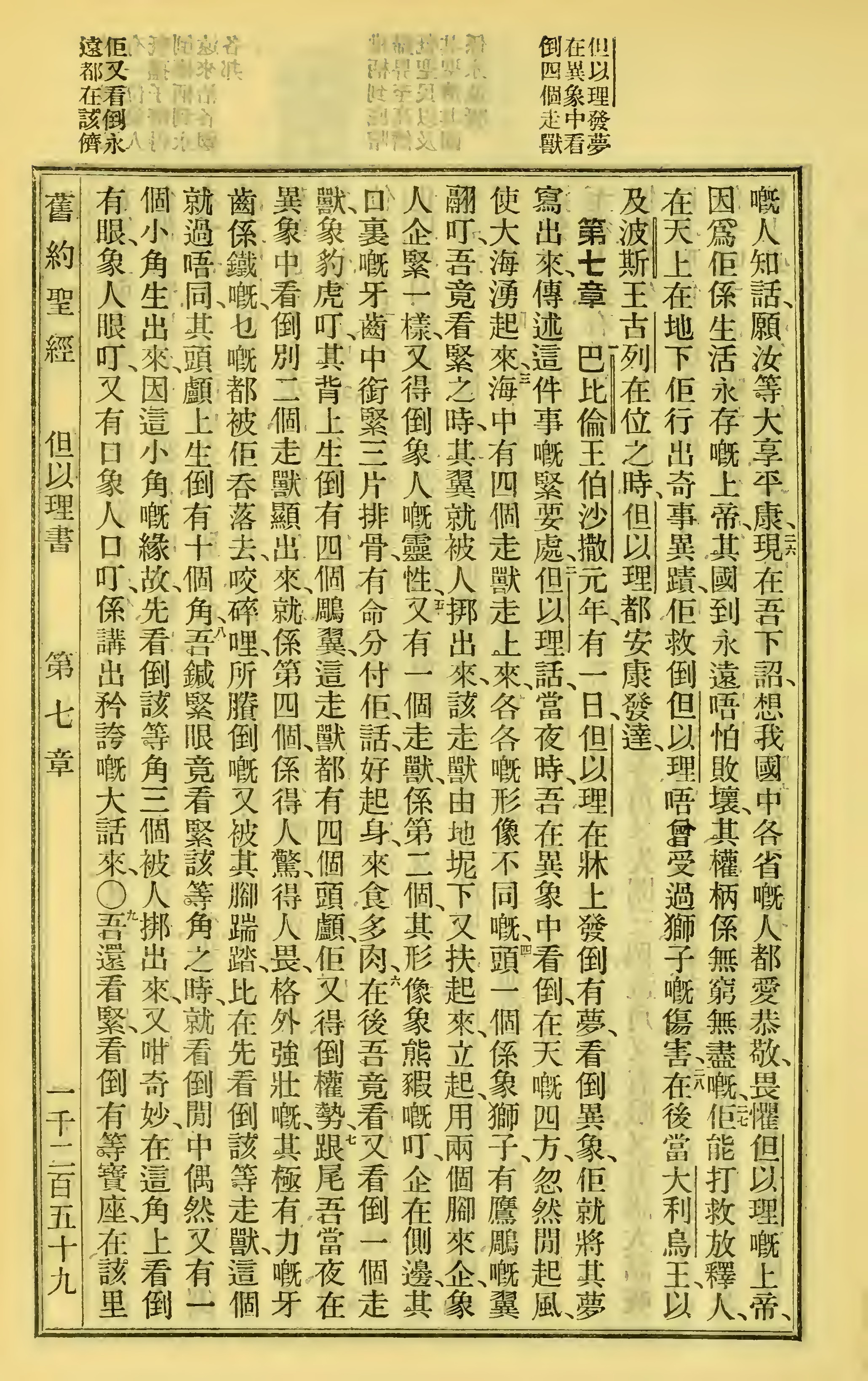1923年聖經全書 但以理書 6 章 26 節到 7 章 9 節