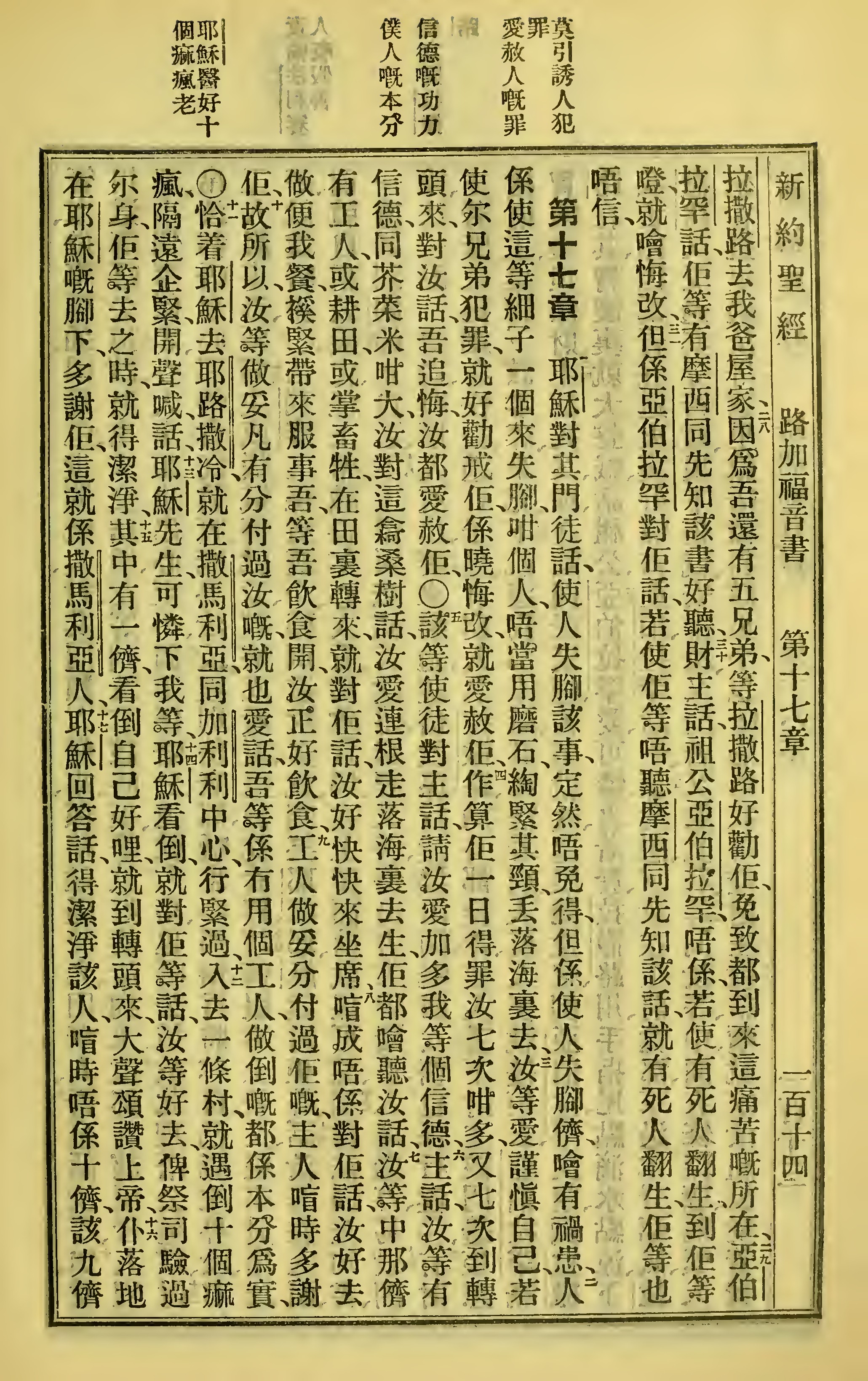 1923年聖經全書 路加福音 16 章 28 節到 17 章 17 節
