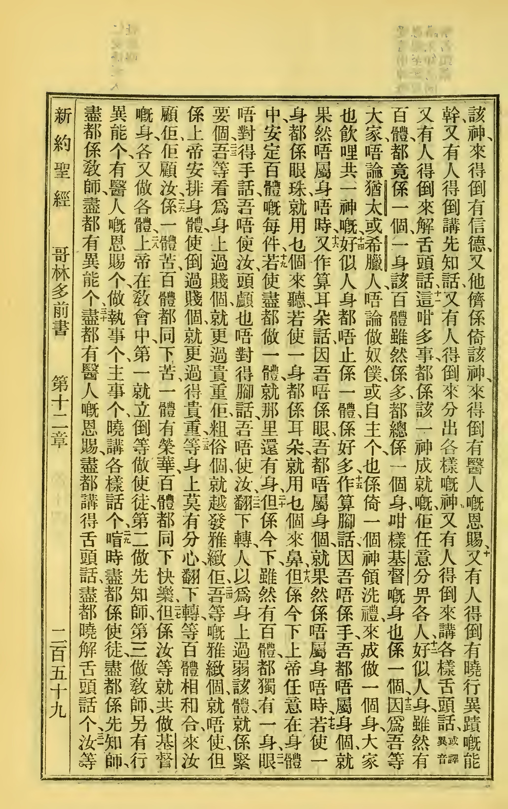 1923年聖經全書 哥林多前書 12 章 10 節到 12 章 30 節