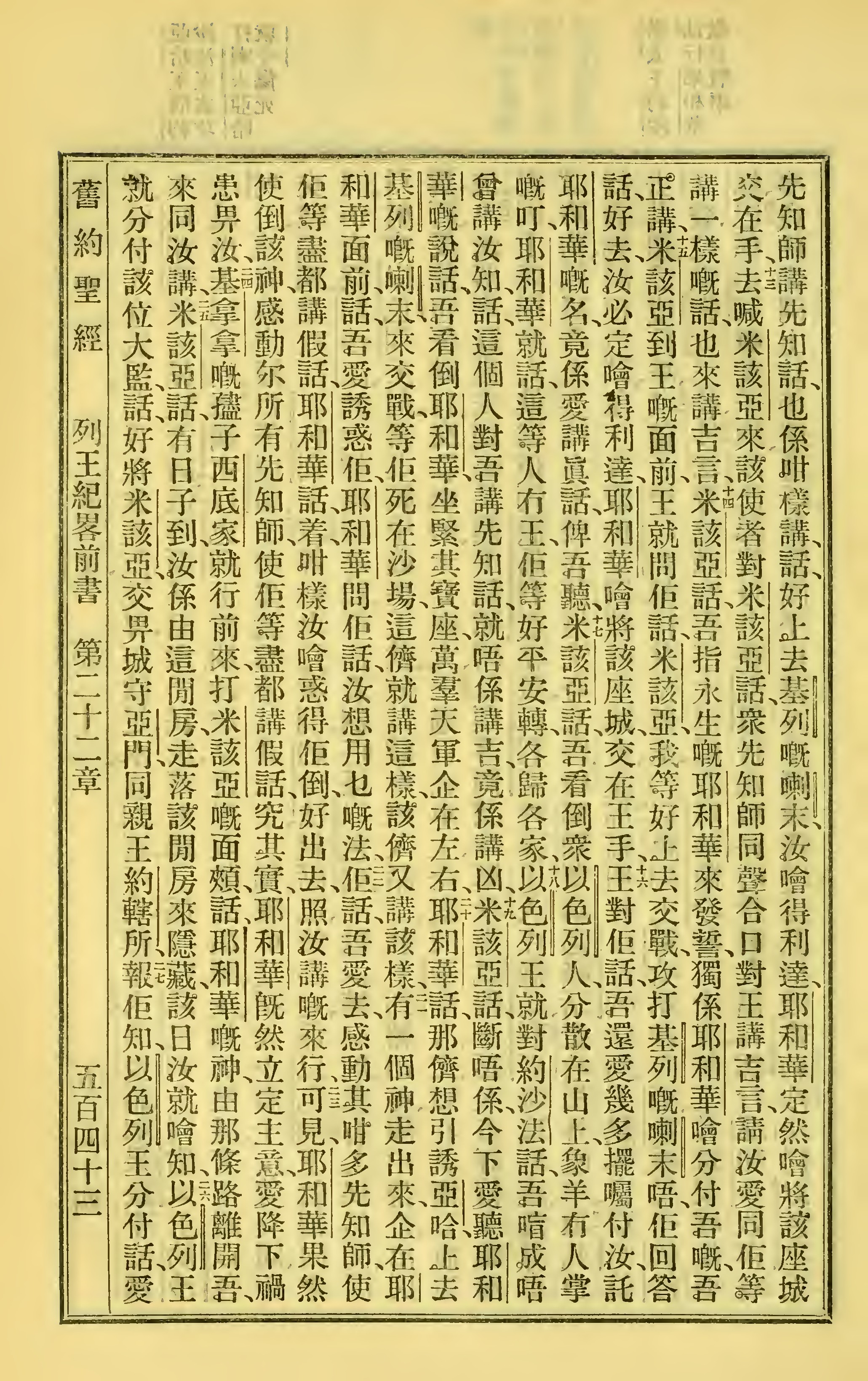 1923年聖經全書 列王紀上 22 章 12 節到 22 章 27 節