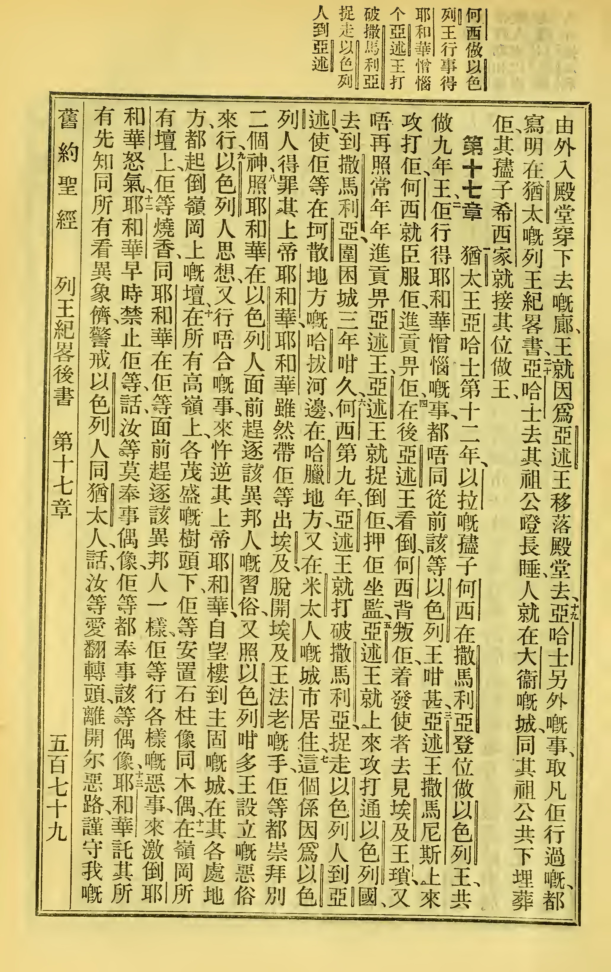 1923年聖經全書 列王紀下 16 章 19 節到 17 章 13 節