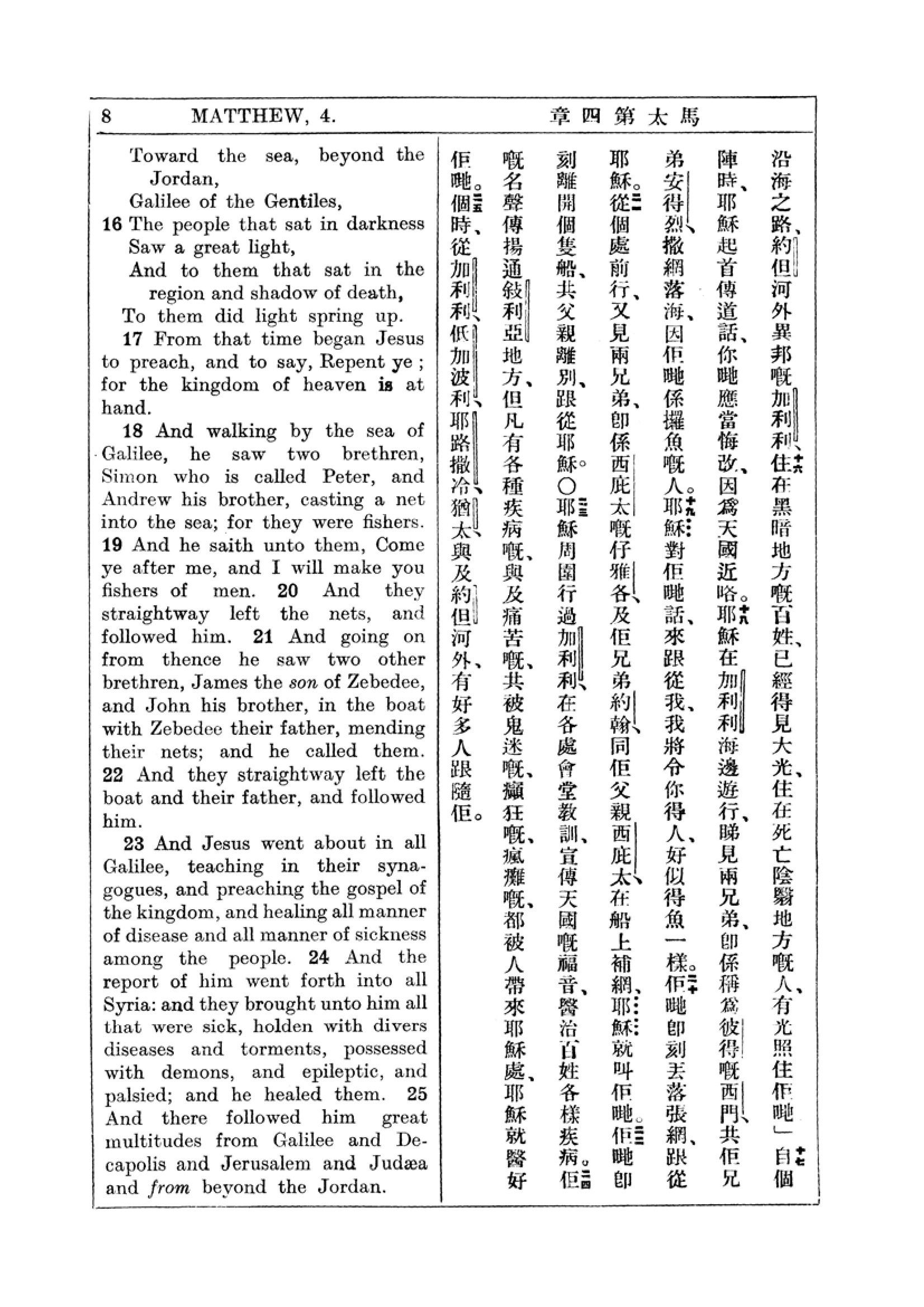 1927年新約全書(中英對照) 馬太福音 4 章 16 節到 4 章 25 節