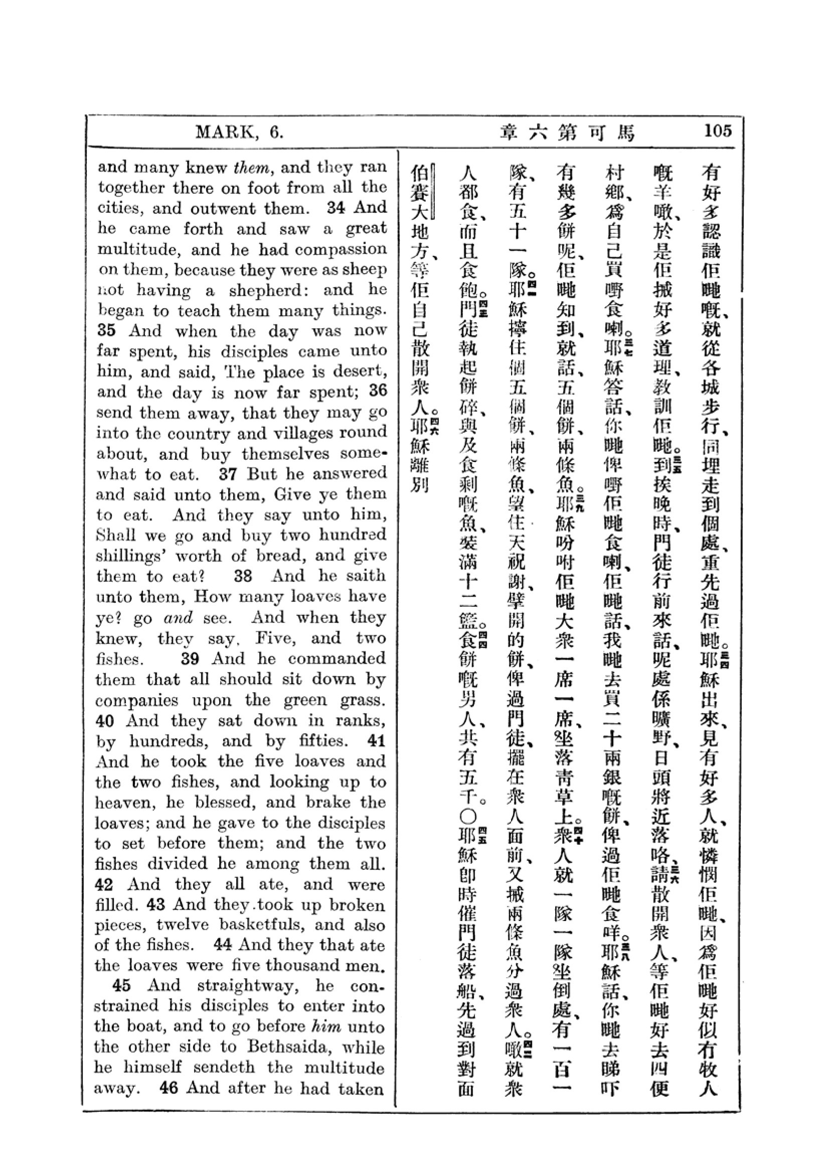 1927年新約全書(中英對照) 馬可福音 6 章 33 節到 6 章 45 節