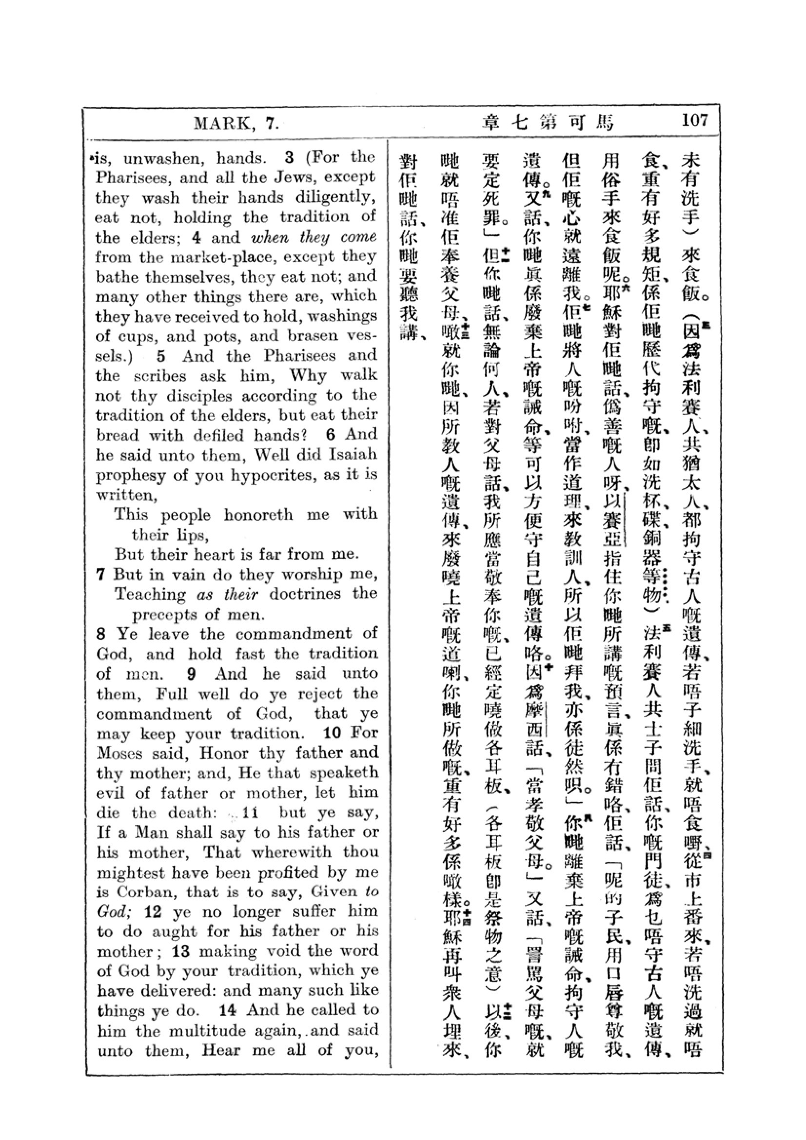 1927年新約全書(中英對照) 馬可福音 7 章 3 節到 7 章 14 節