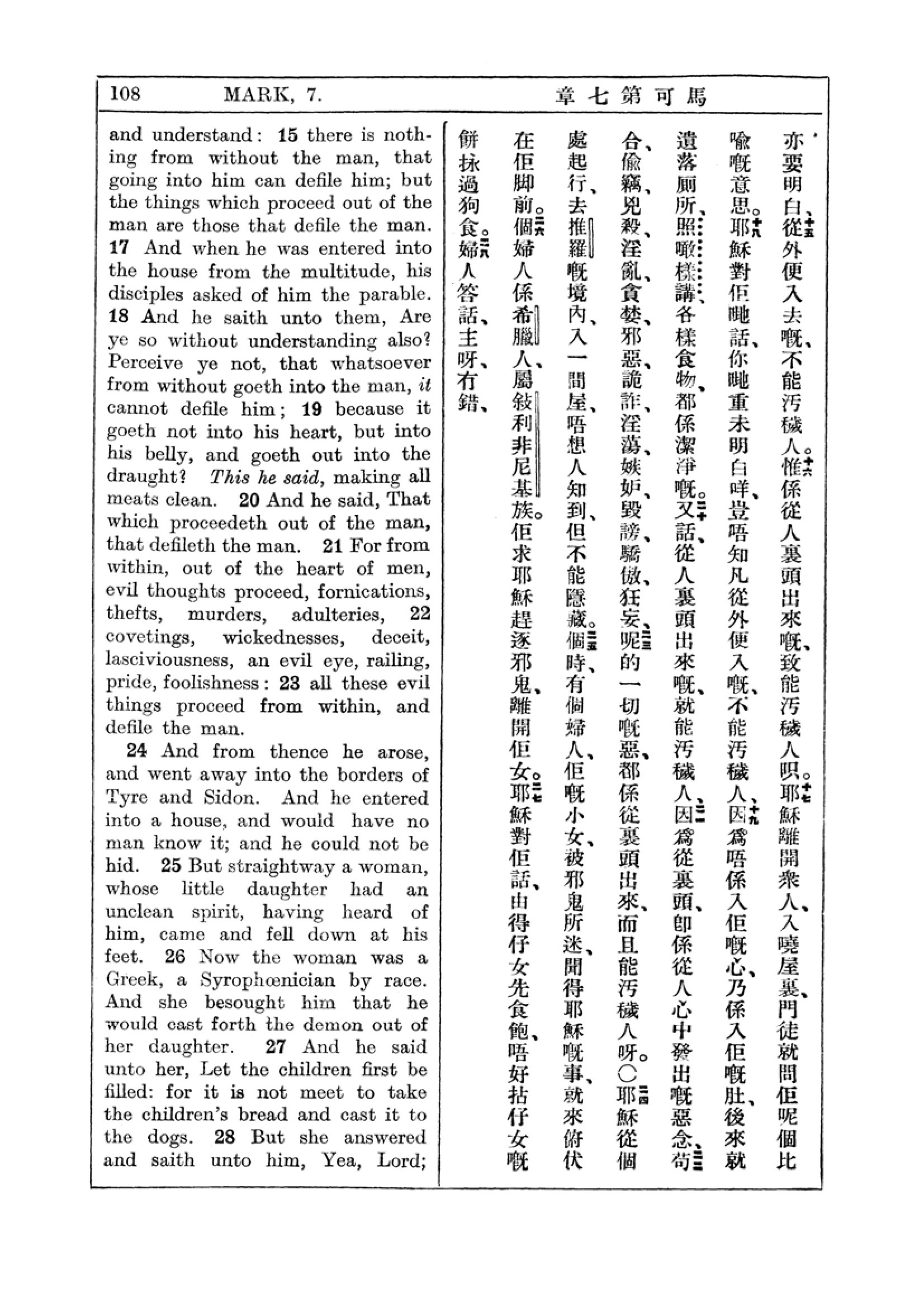 1927年新約全書(中英對照) 馬可福音 7 章 15 節到 7 章 28 節