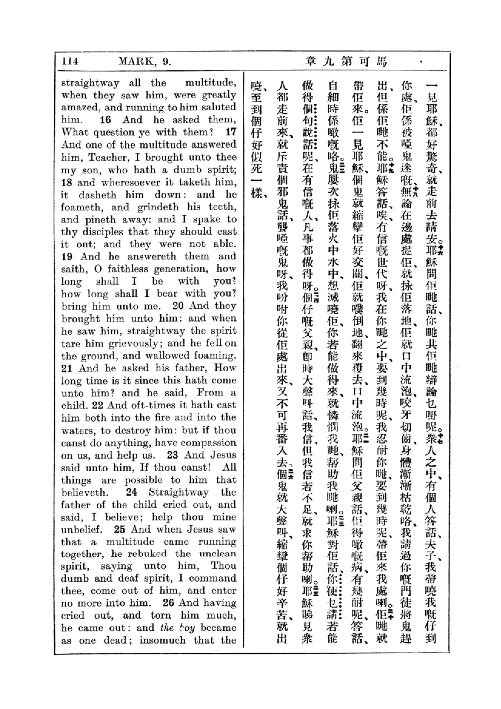 1927年新約全書(中英對照) 馬可福音 9 章 15 節到 9 章 26 節