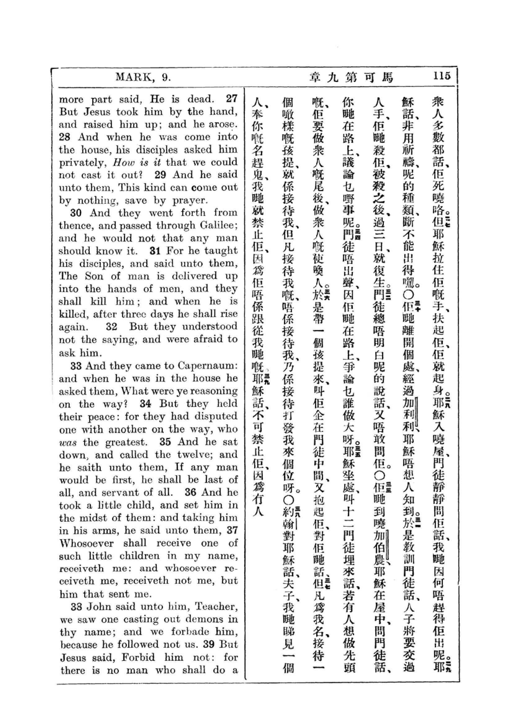 1927年新約全書(中英對照) 馬可福音 9 章 27 節到 9 章 39 節