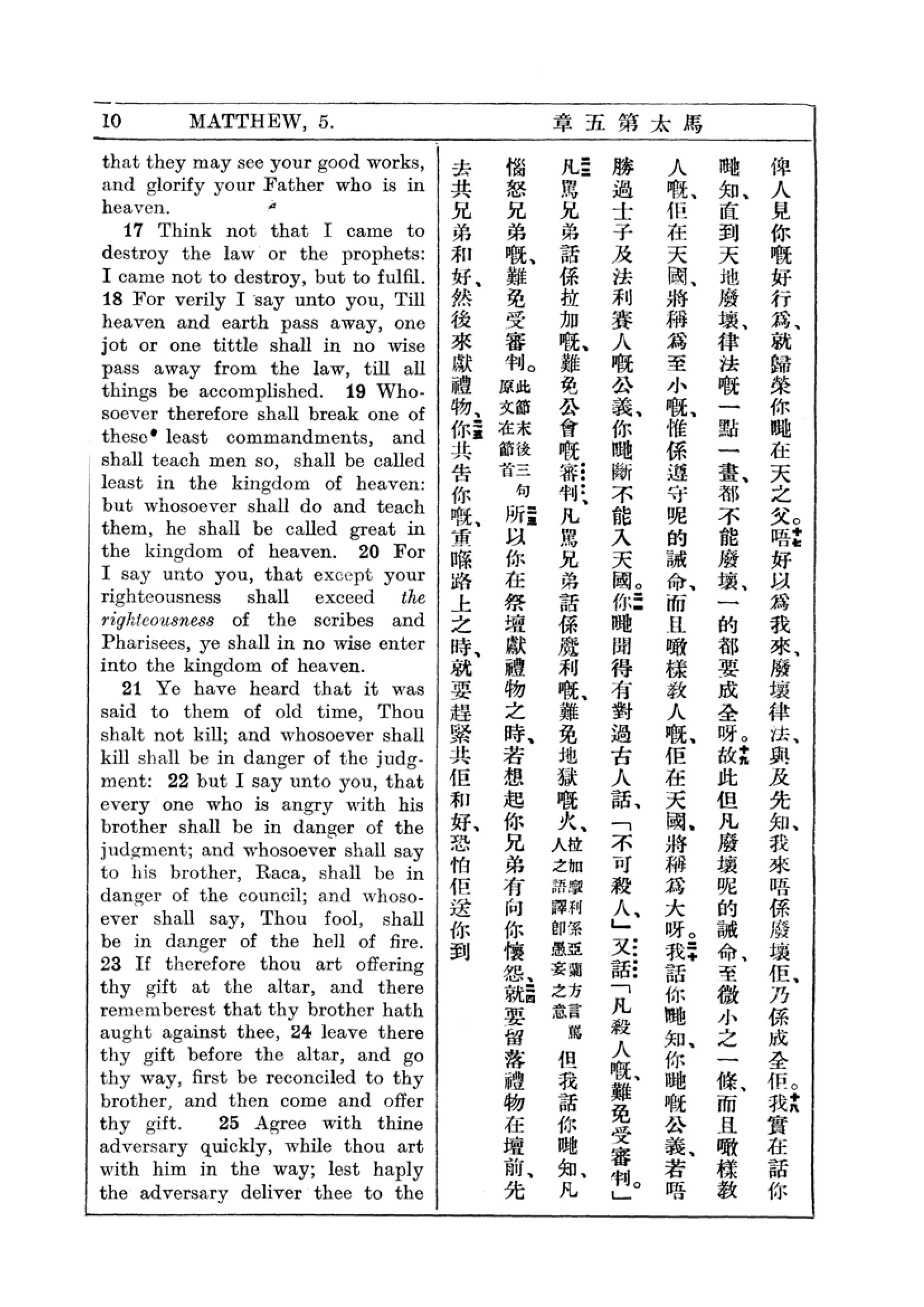 1927年新約全書(中英對照) 馬太福音 5 章 17 節到 5 章 25 節