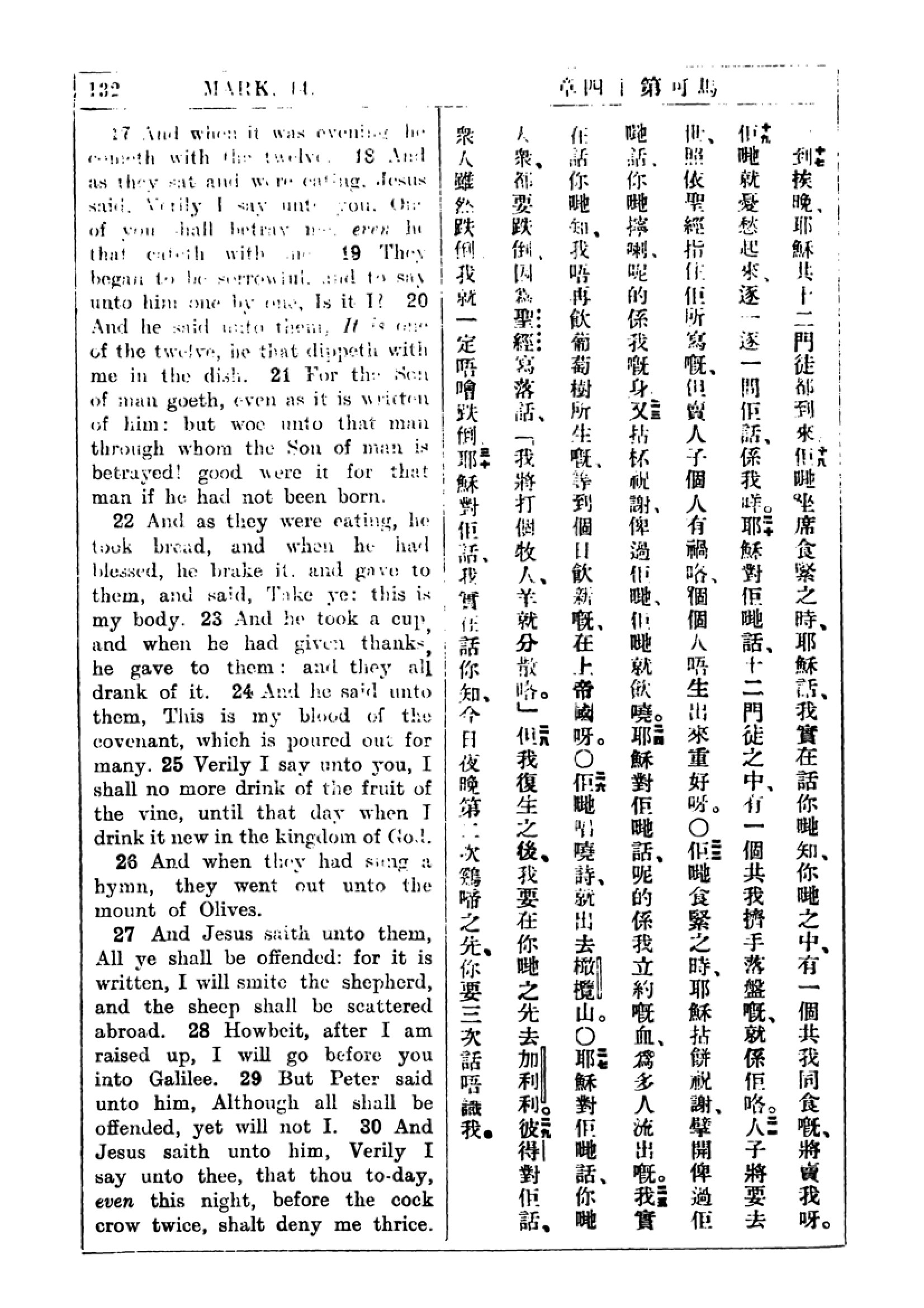 1927年新約全書(中英對照) 馬可福音 14 章 17 節到 14 章 30 節