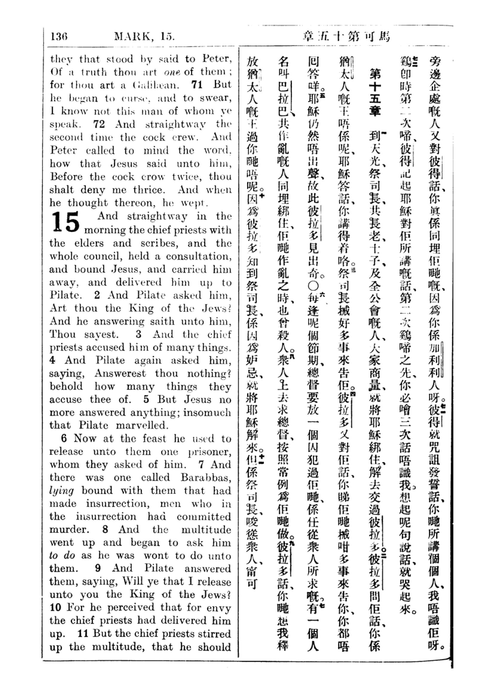 1927年新約全書(中英對照) 馬可福音 14 章 71 節到 15 章 11 節