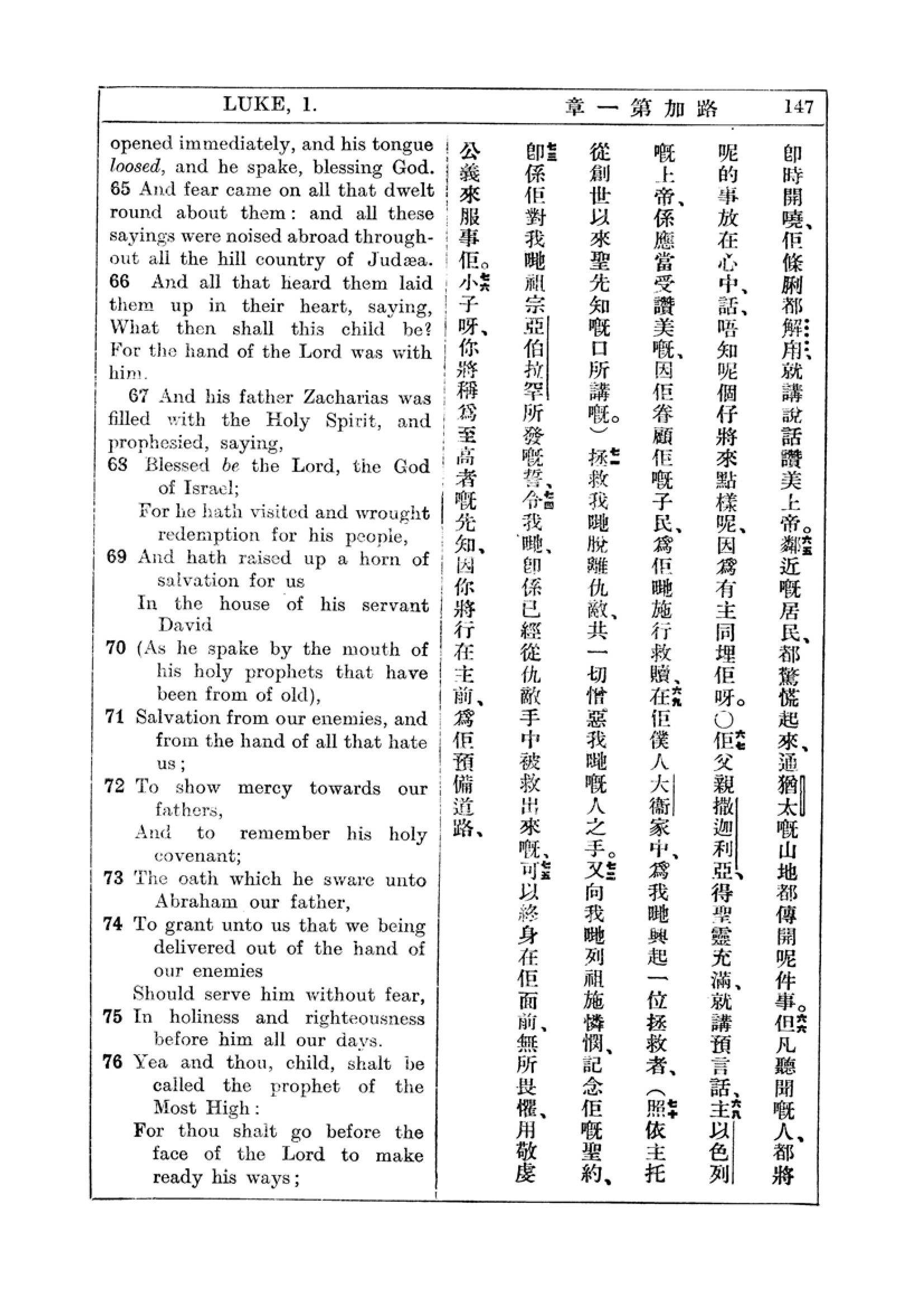 1927年新約全書(中英對照) 路加福音 1 章 65 節到 1 章 76 節