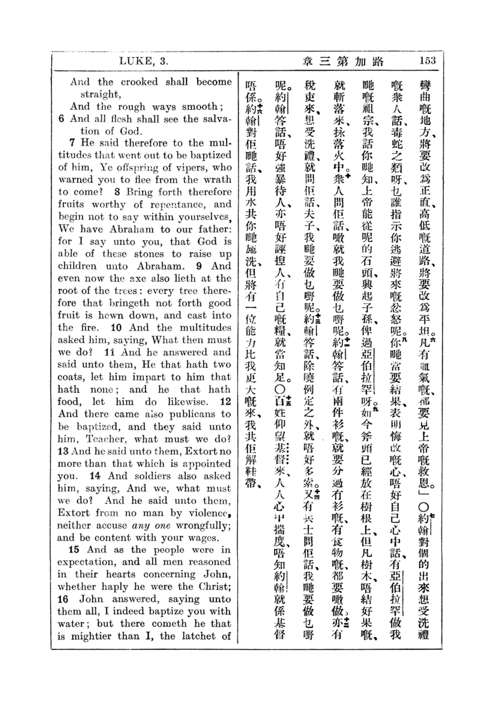 1927年新約全書(中英對照) 路加福音 3 章 6 節到 3 章 16 節