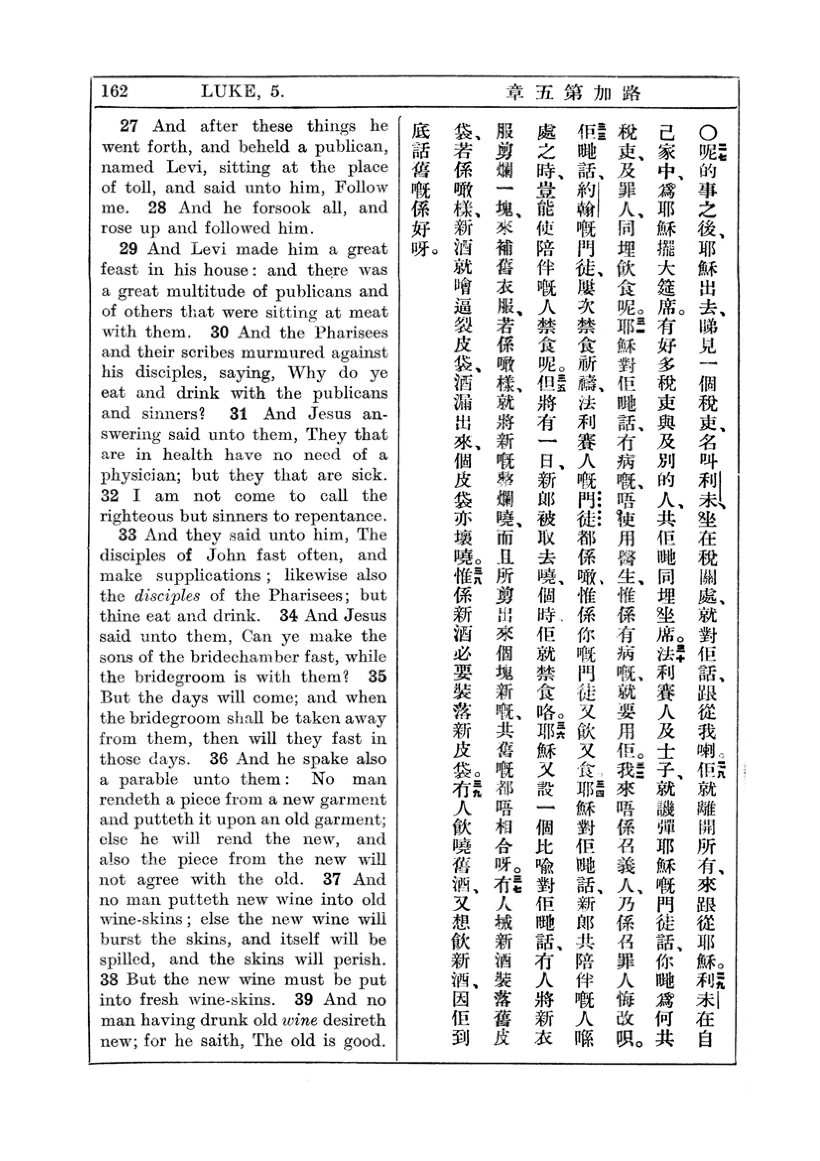 1927年新約全書(中英對照) 路加福音 5 章 27 節到 5 章 39 節