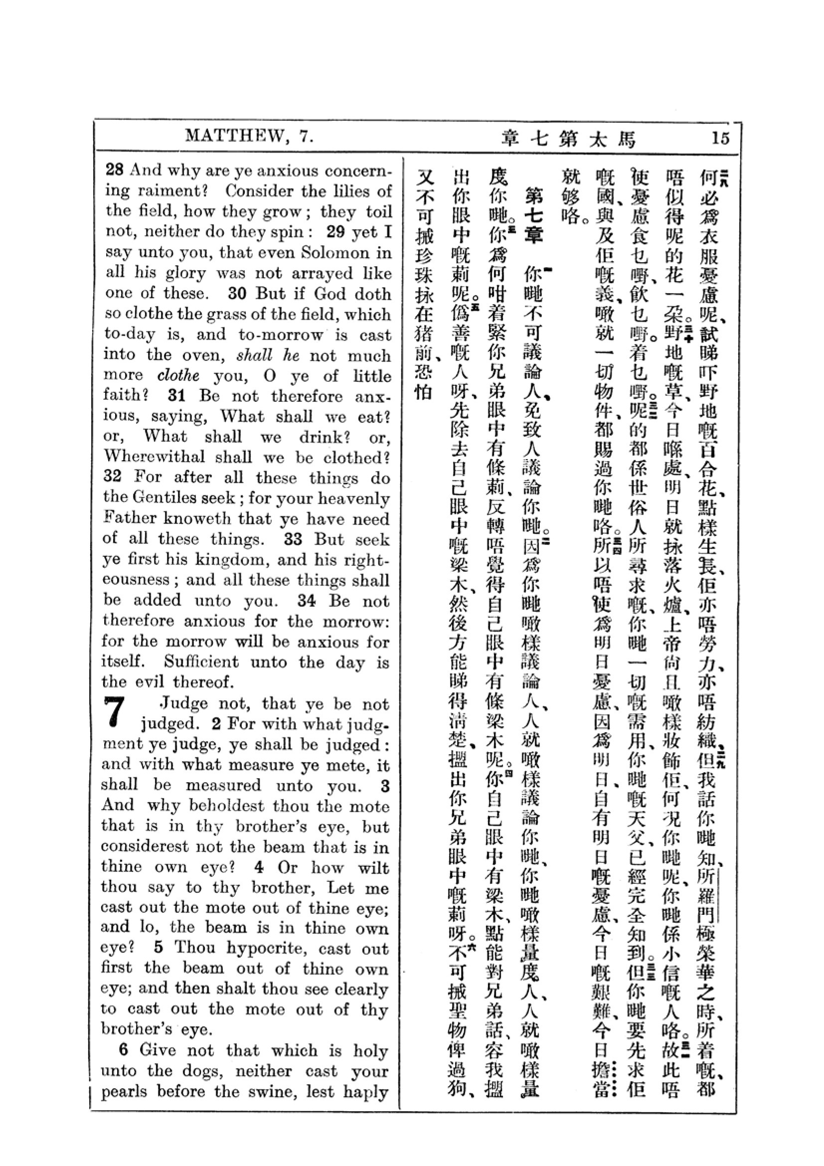 1927年新約全書(中英對照) 馬太福音 6 章 28 節到 7 章 6 節