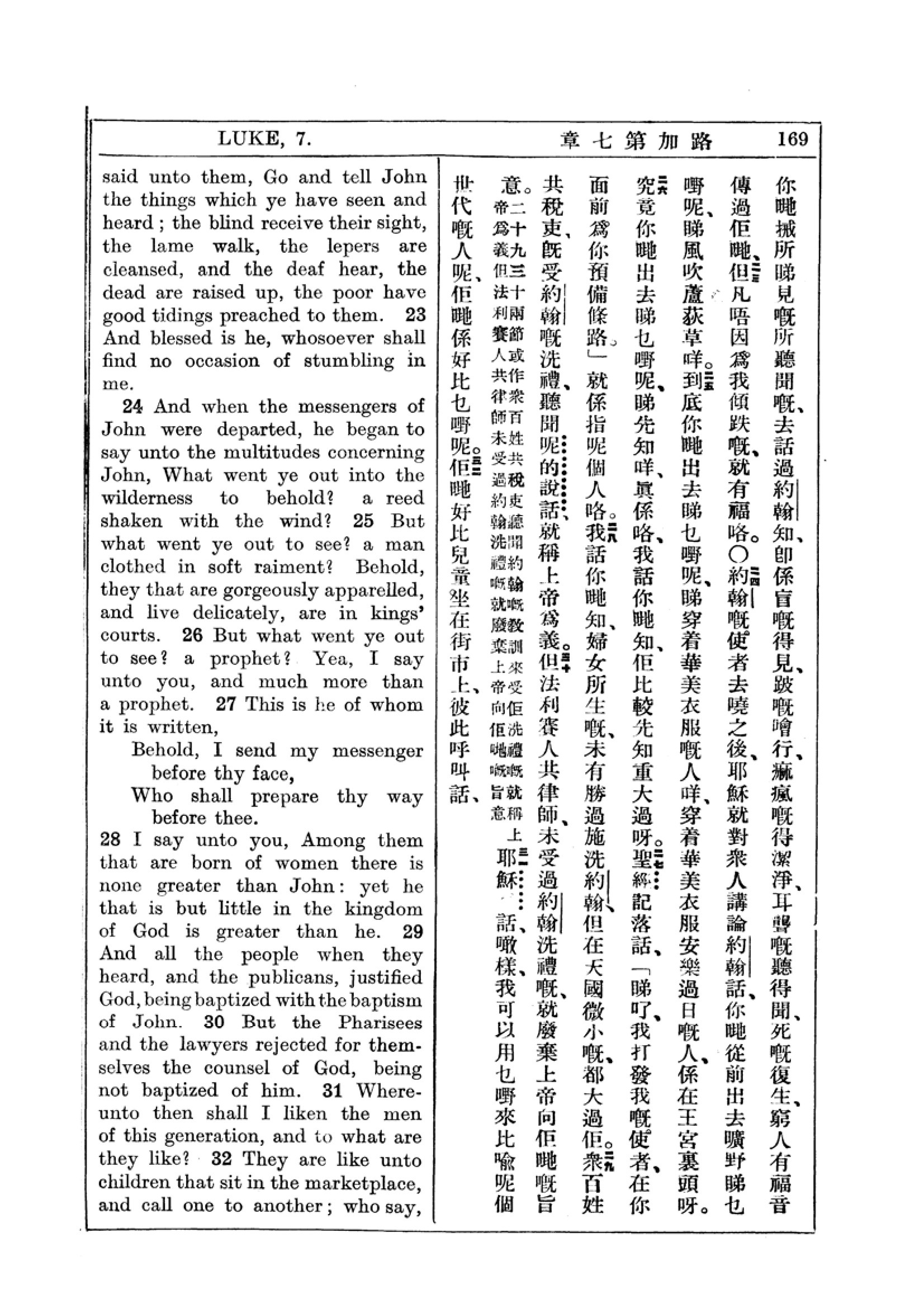 1927年新約全書(中英對照) 路加福音 7 章 22 節到 7 章 32 節
