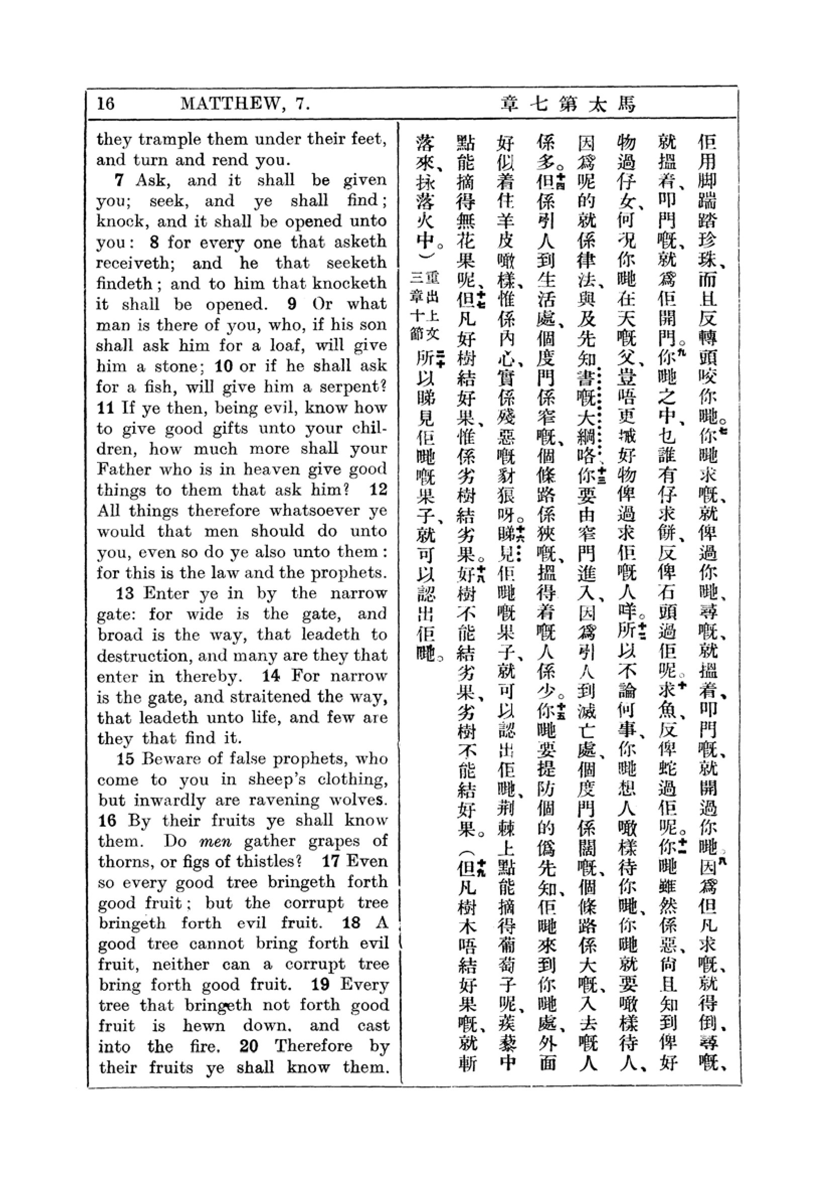 1927年新約全書(中英對照) 馬太福音 7 章 7 節到 7 章 20 節