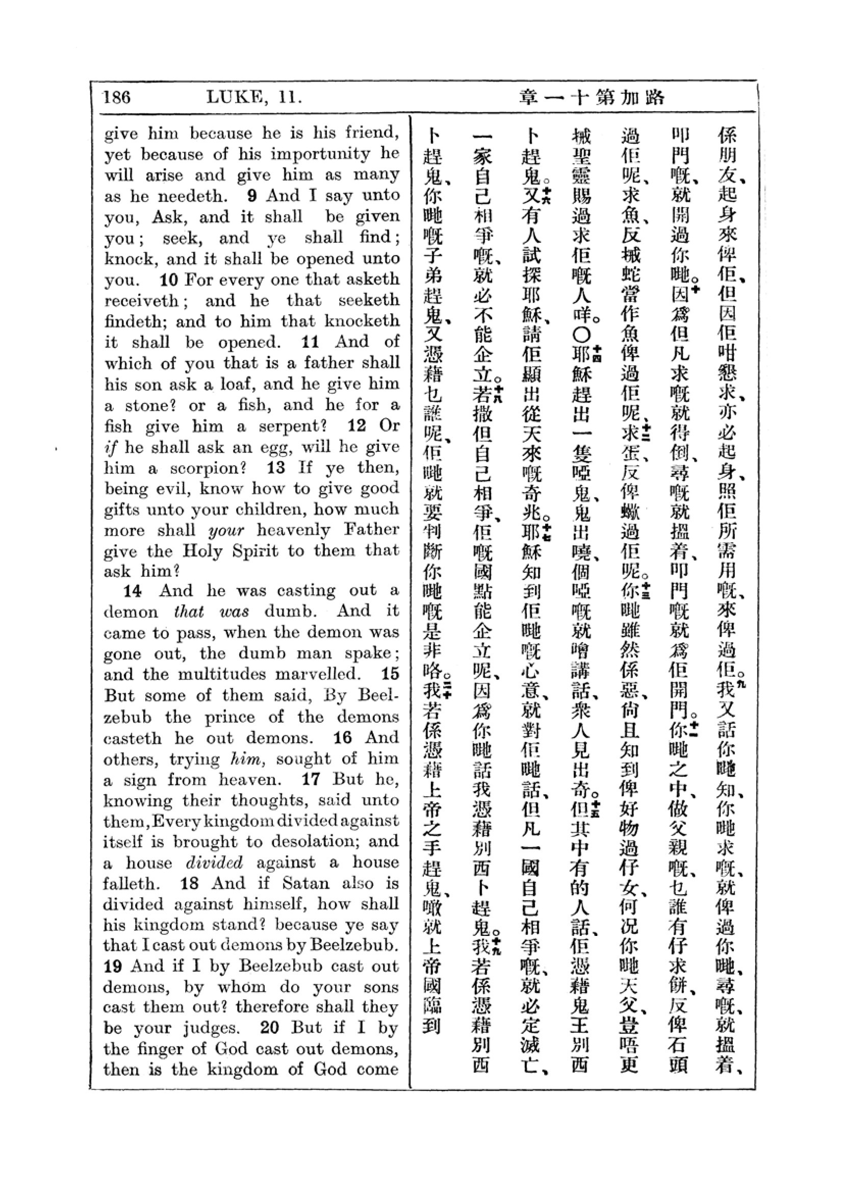 1927年新約全書(中英對照) 路加福音 11 章 8 節到 11 章 20 節
