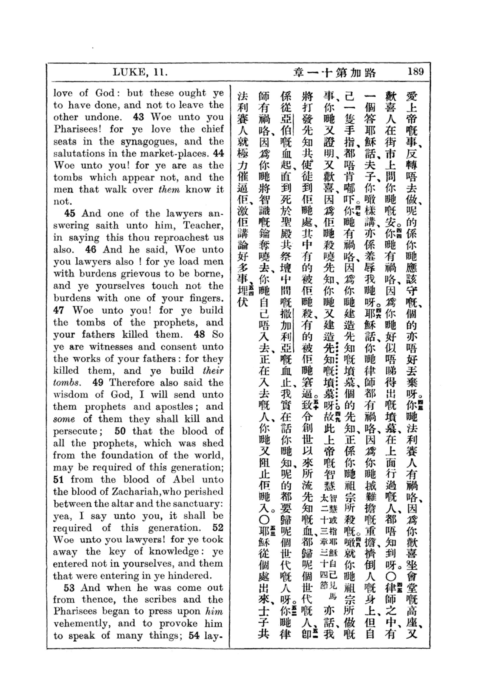1927年新約全書(中英對照) 路加福音 11 章 43 節到 11 章 53 節