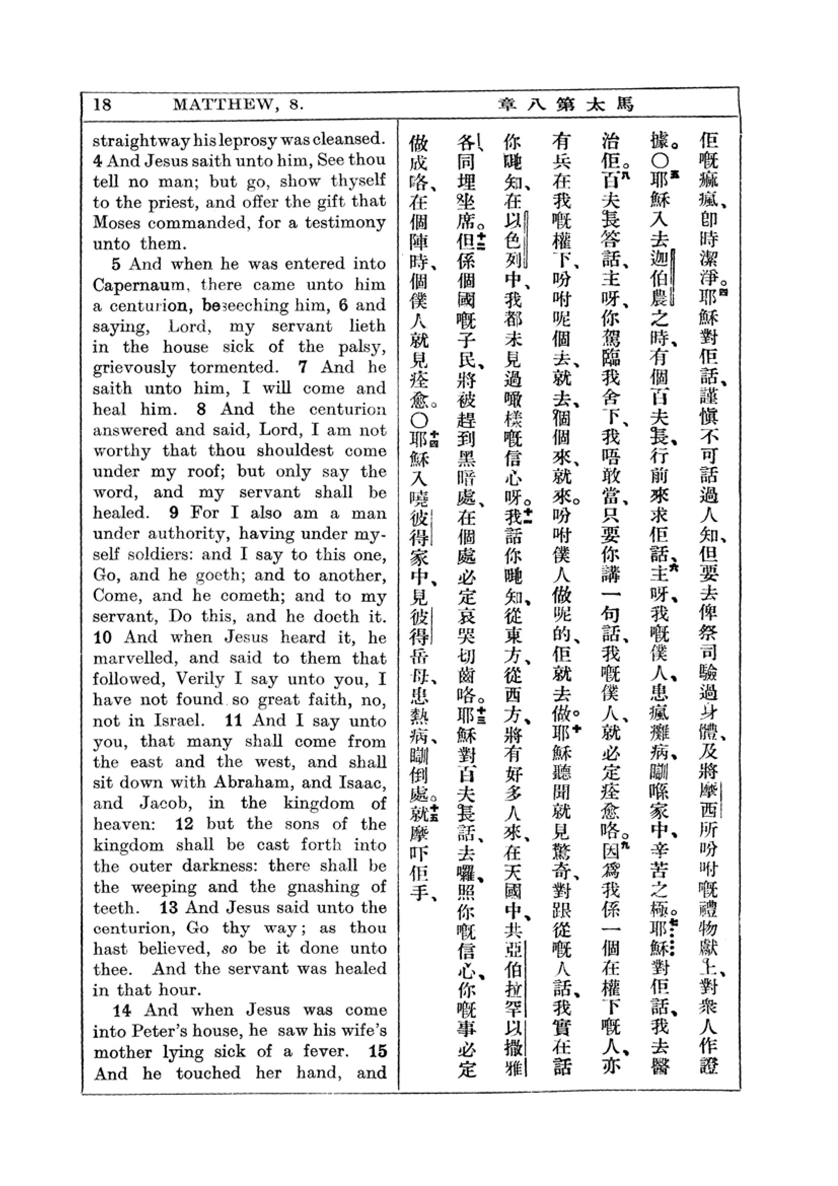 1927年新約全書(中英對照) 馬太福音 8 章 4 節到 8 章 15 節