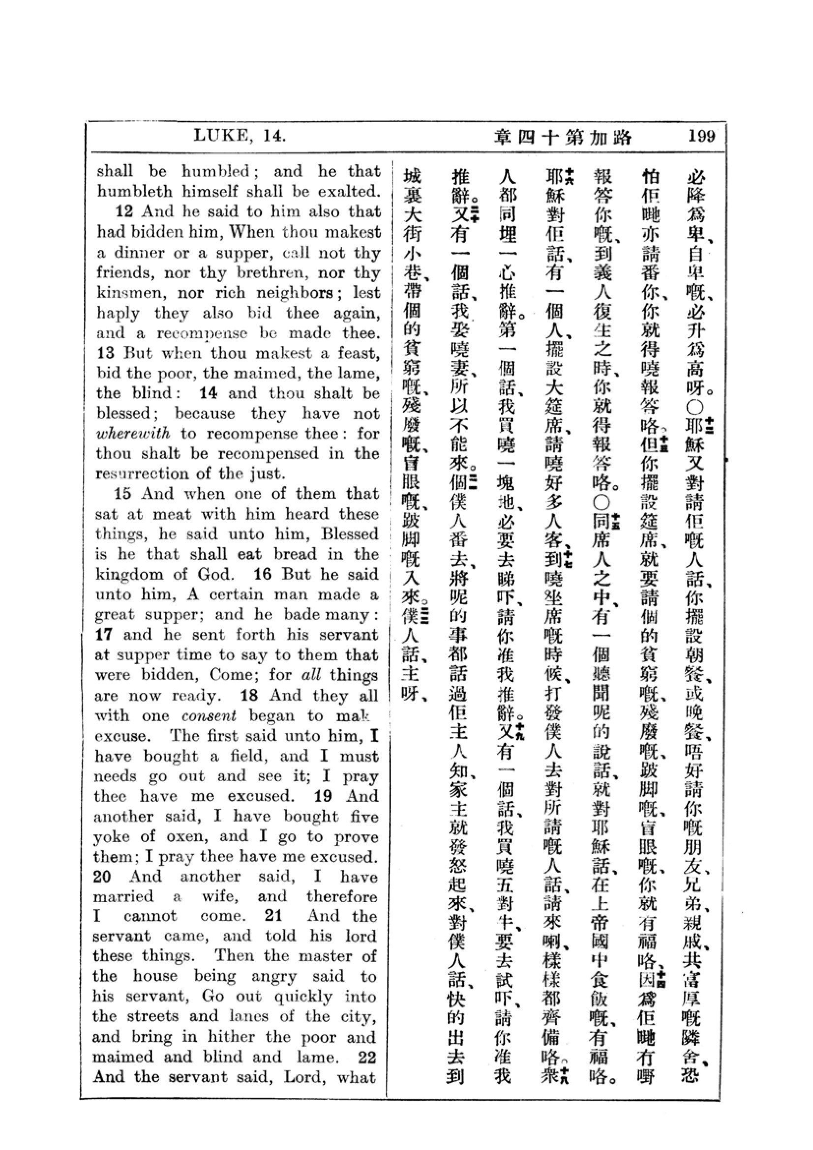 1927年新約全書(中英對照) 路加福音 14 章 12 節到 14 章 21 節