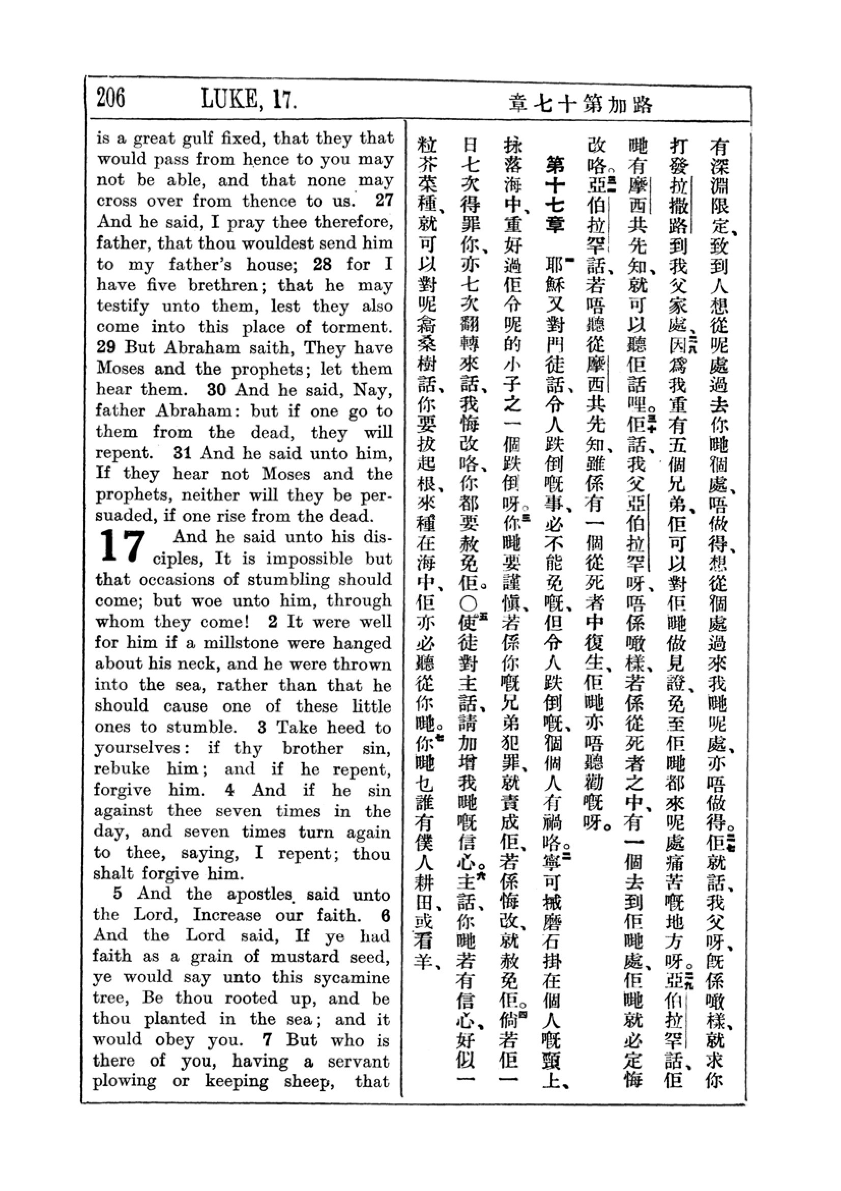 1927年新約全書(中英對照) 路加福音 16 章 26 節到 17 章 7 節