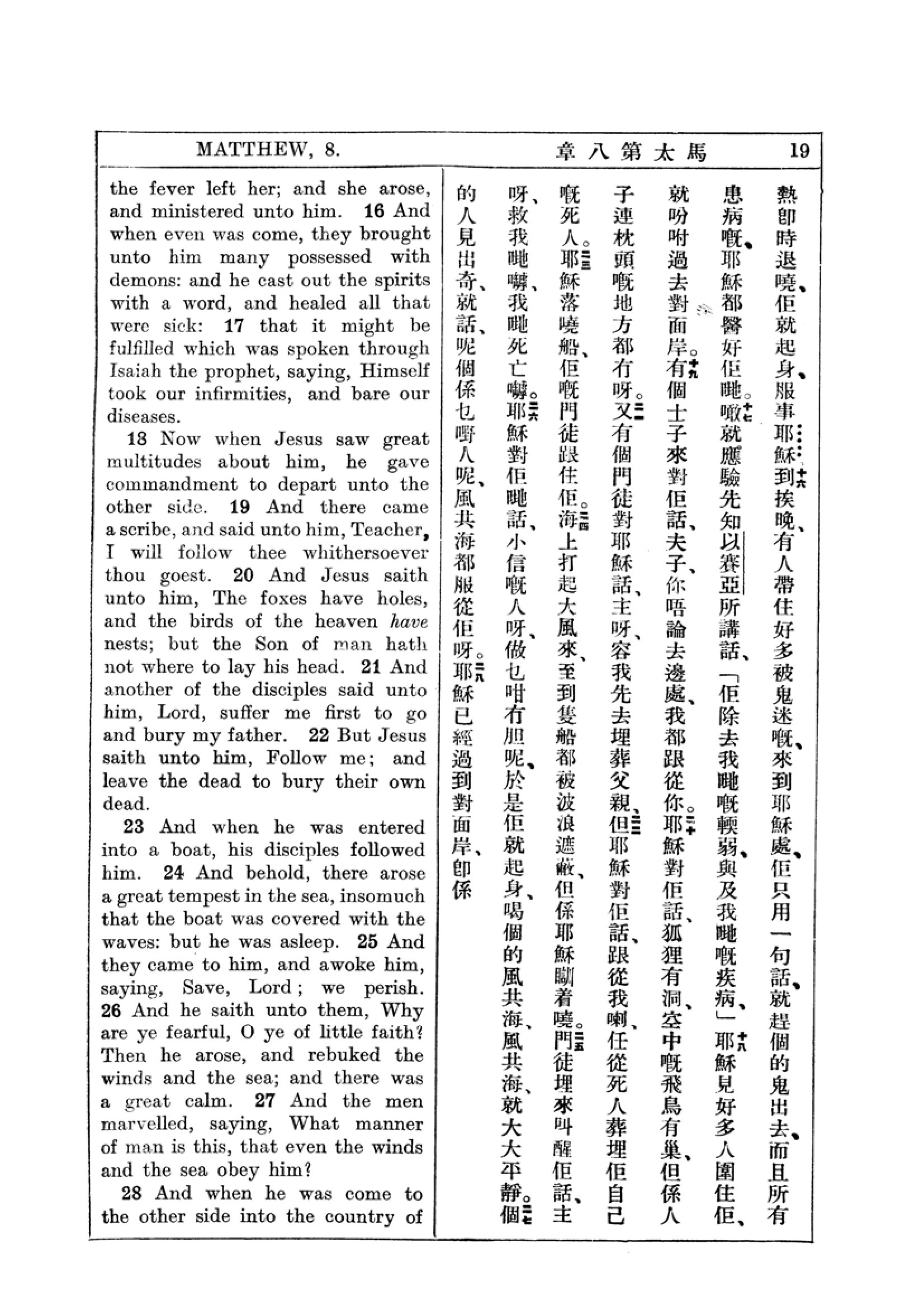 1927年新約全書(中英對照) 馬太福音 8 章 16 節到 8 章 28 節