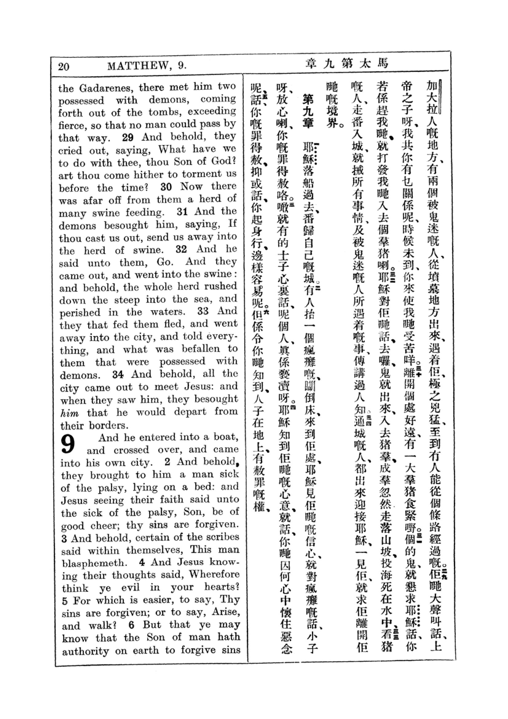 1927年新約全書(中英對照) 馬太福音 8 章 29 節到 9 章 6 節