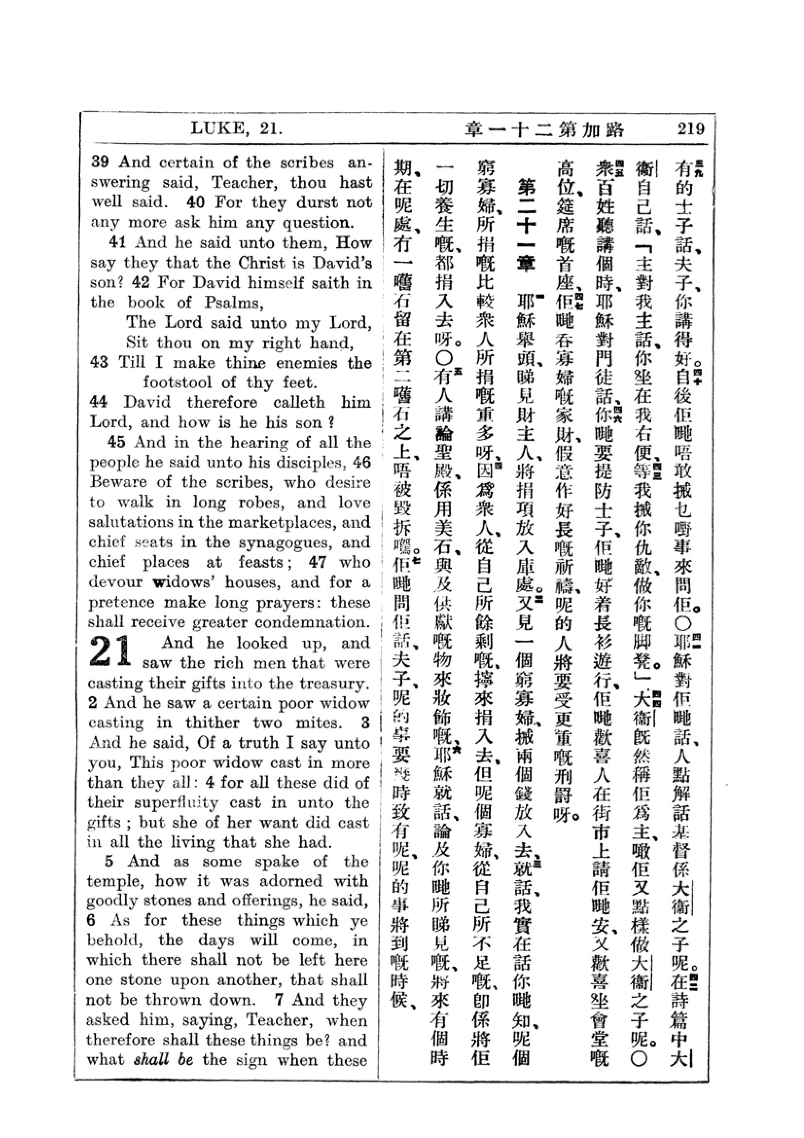 1927年新約全書(中英對照) 路加福音 20 章 39 節到 21 章 7 節