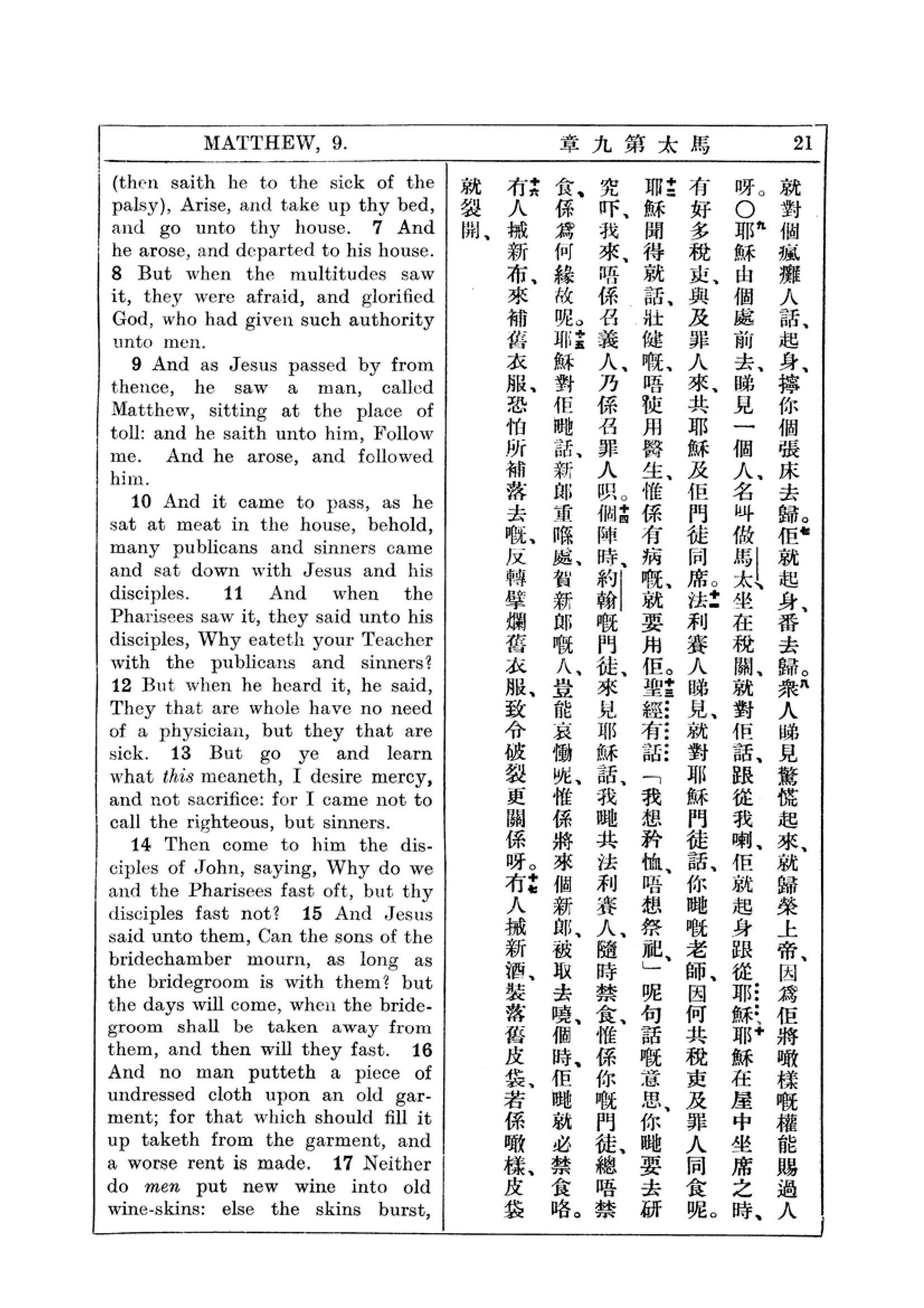 1927年新約全書(中英對照) 馬太福音 9 章 7 節到 9 章 17 節