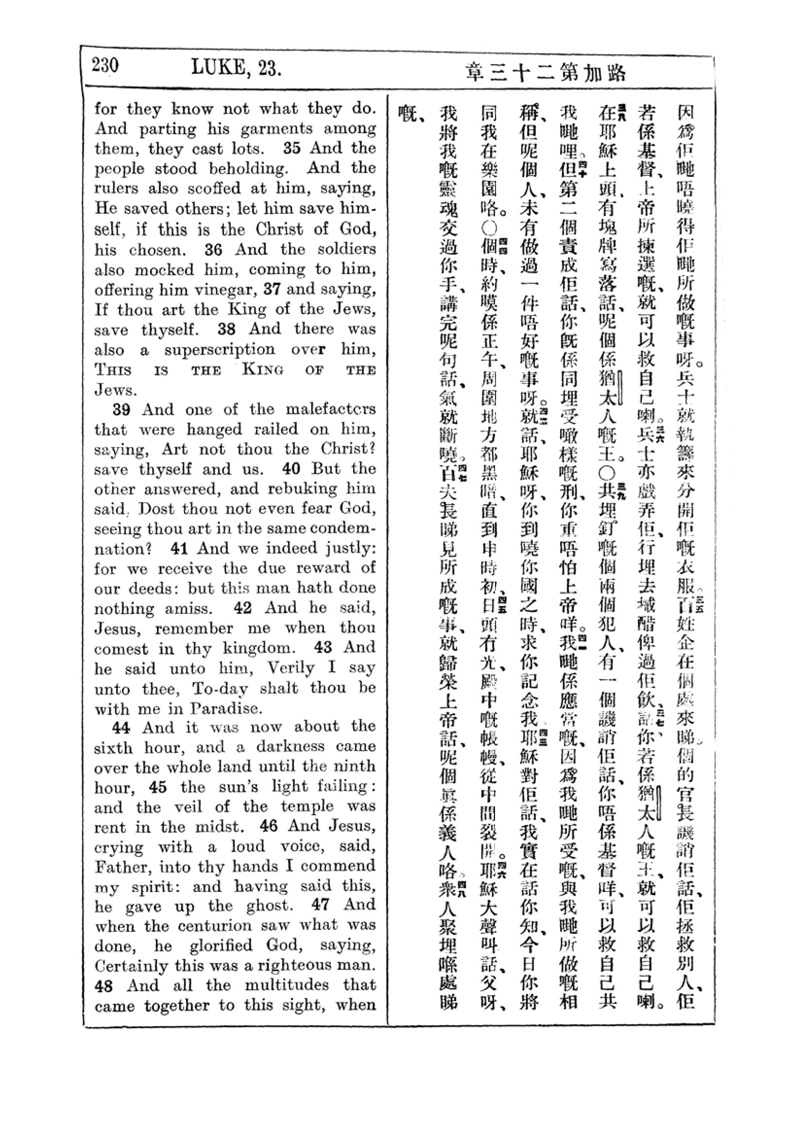 1927年新約全書(中英對照) 路加福音 23 章 35 節到 23 章 48 節
