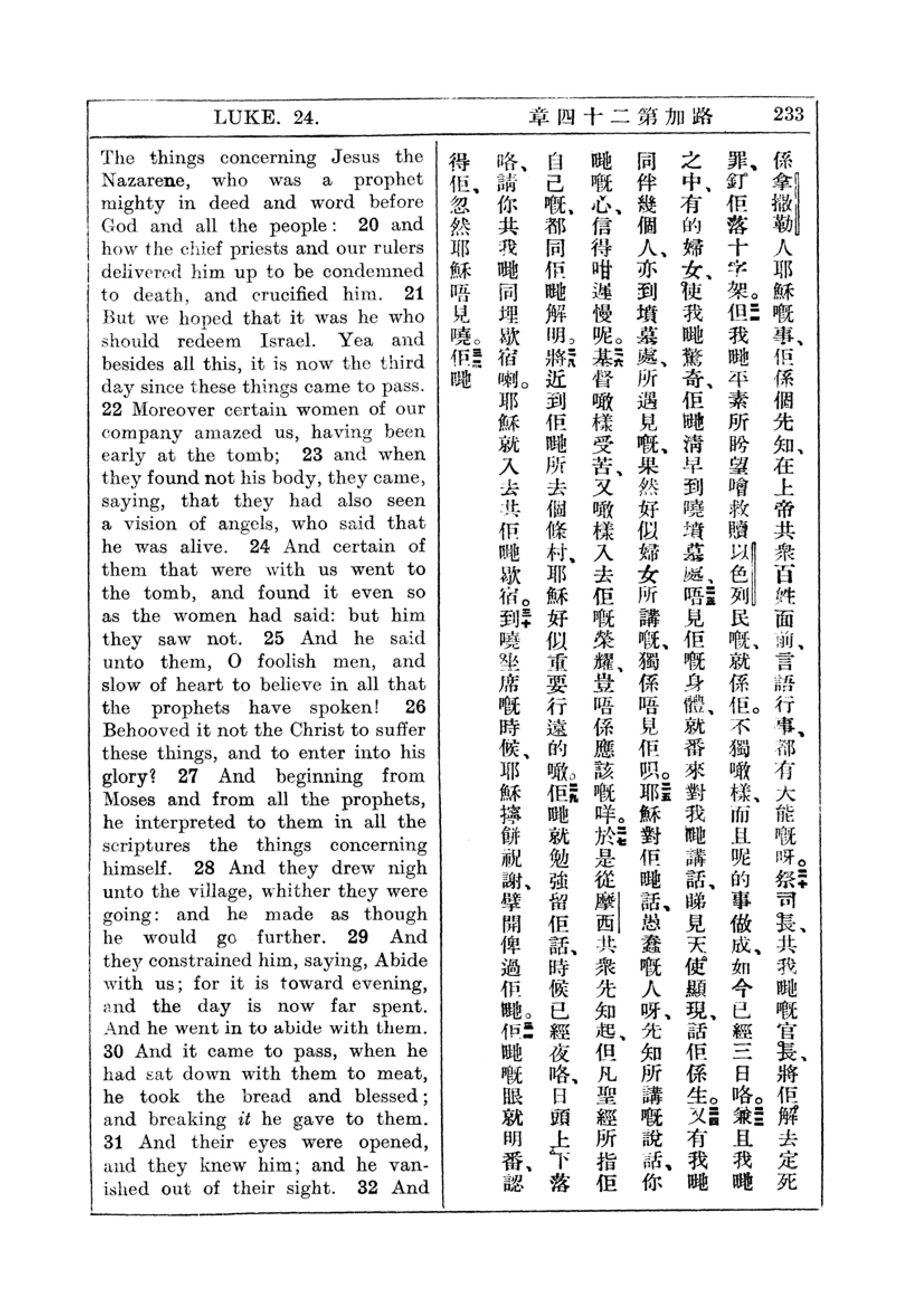 1927年新約全書(中英對照) 路加福音 24 章 19 節到 24 章 31 節