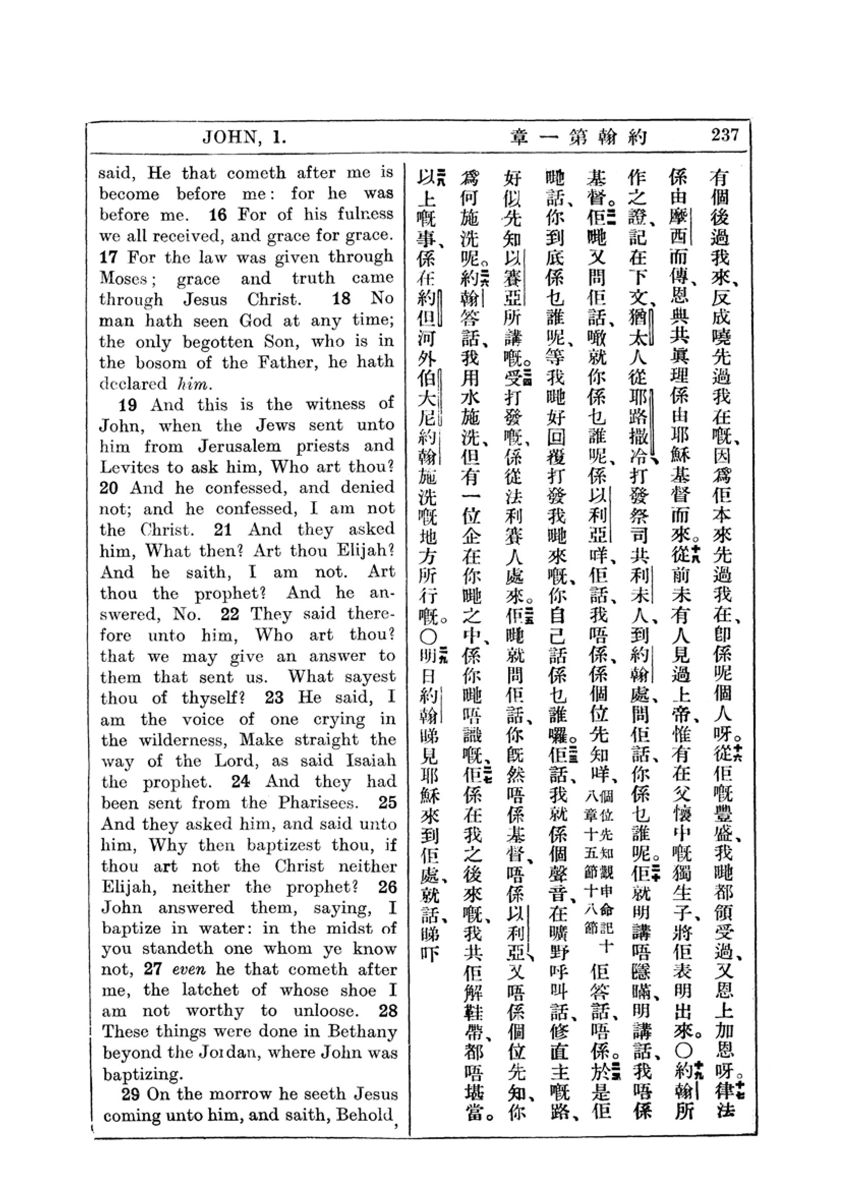 1927年新約全書(中英對照) 約翰福音 1 章 16 節到 1 章 29 節