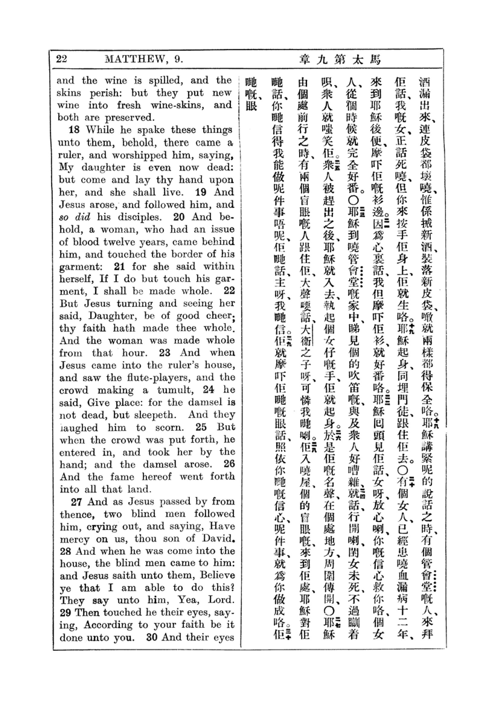1927年新約全書(中英對照) 馬太福音 9 章 18 節到 9 章 29 節