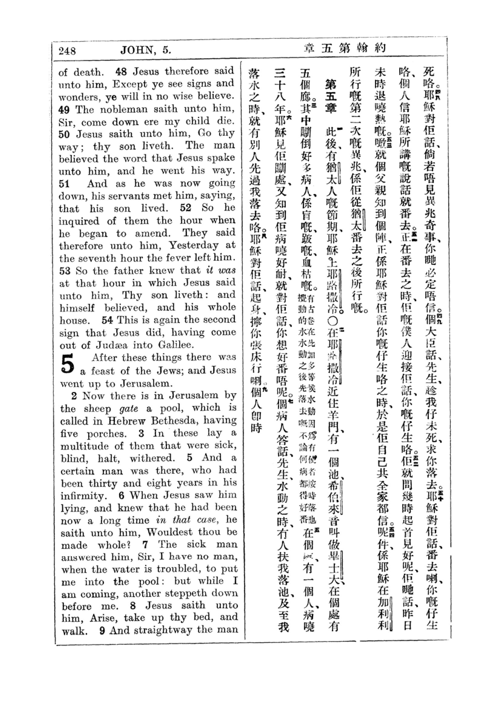 1927年新約全書(中英對照) 約翰福音 4 章 48 節到 5 章 8 節
