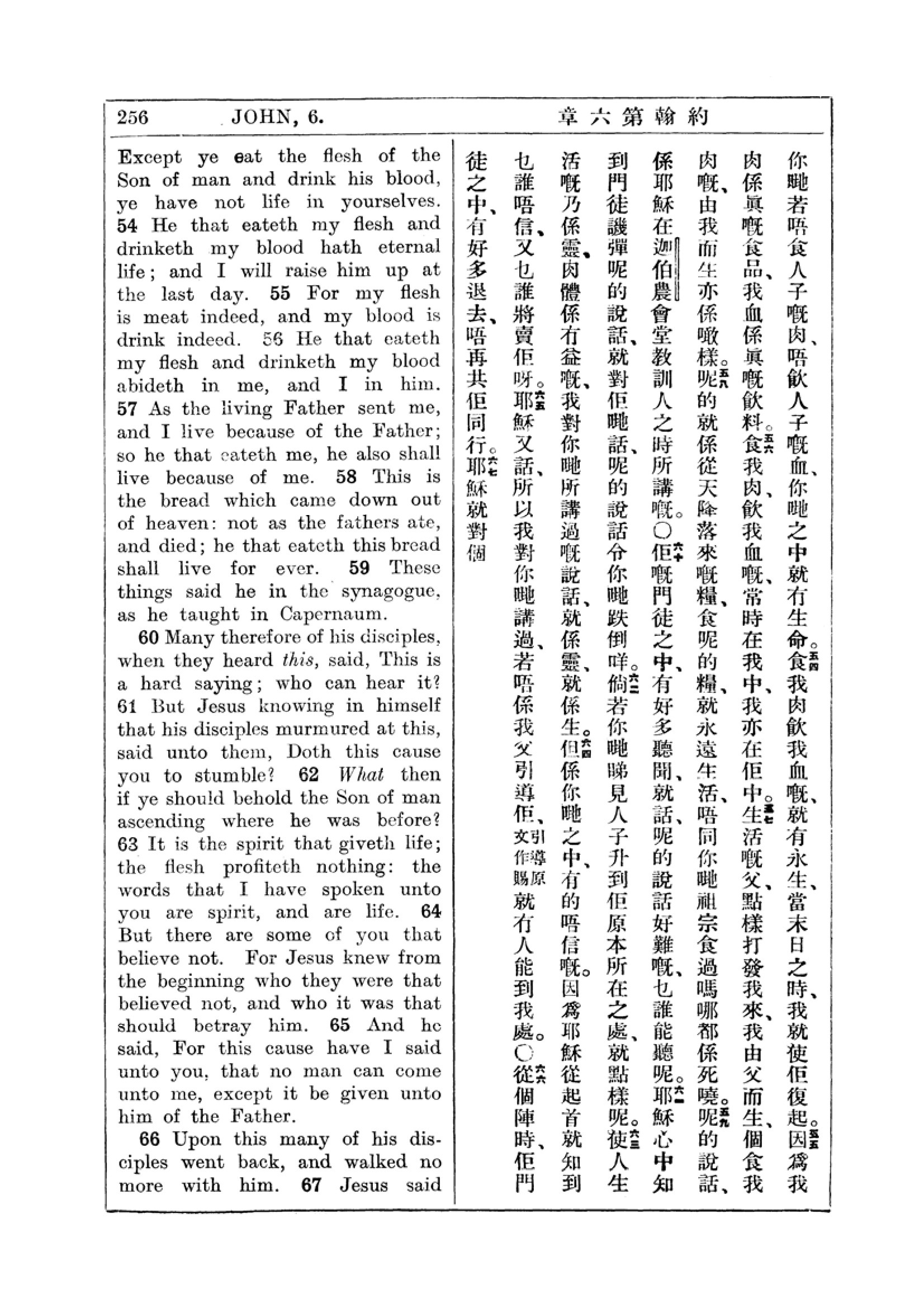 1927年新約全書(中英對照) 約翰福音 6 章 54 節到 6 章 66 節