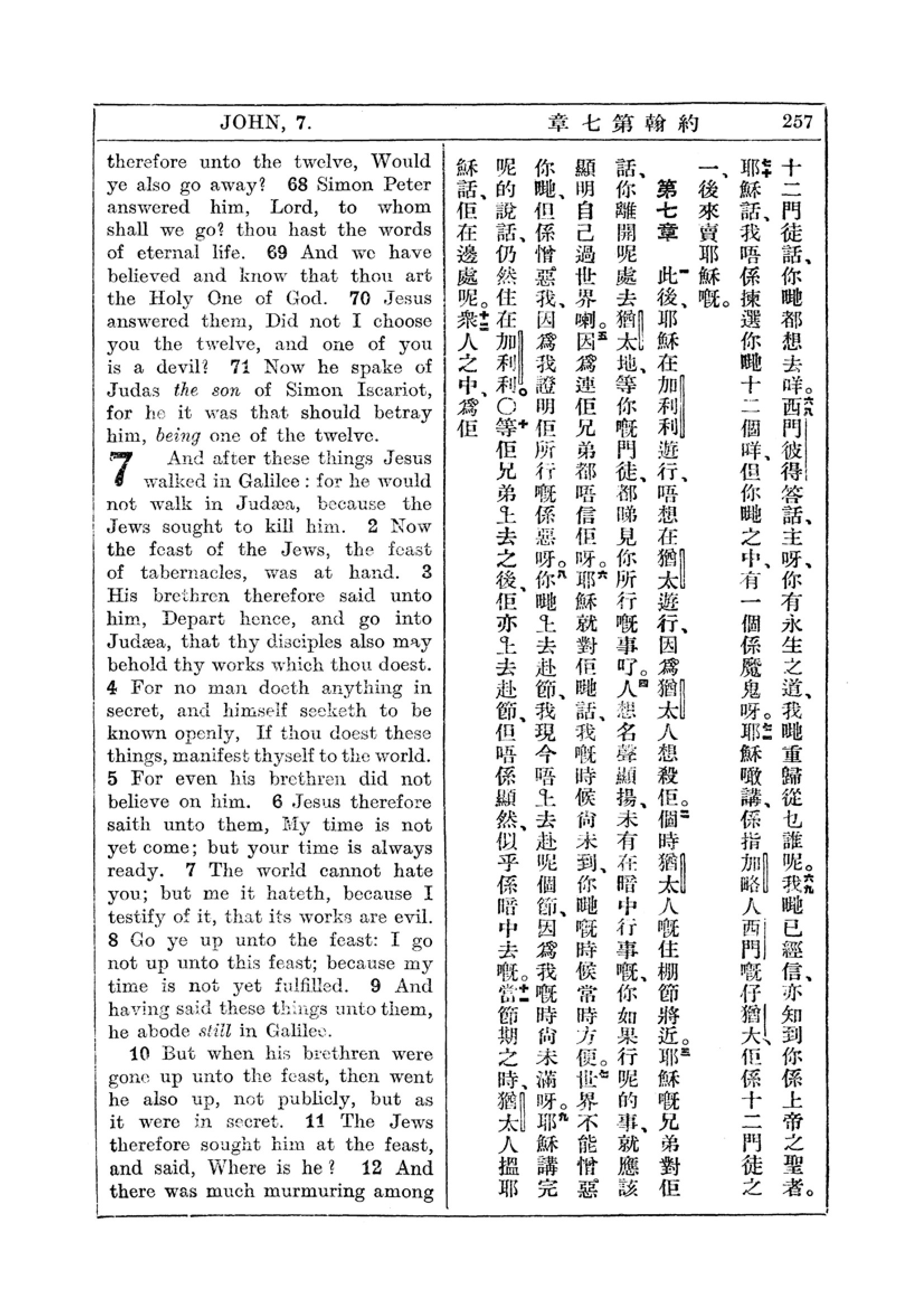 1927年新約全書(中英對照) 約翰福音 6 章 67 節到 7 章 11 節