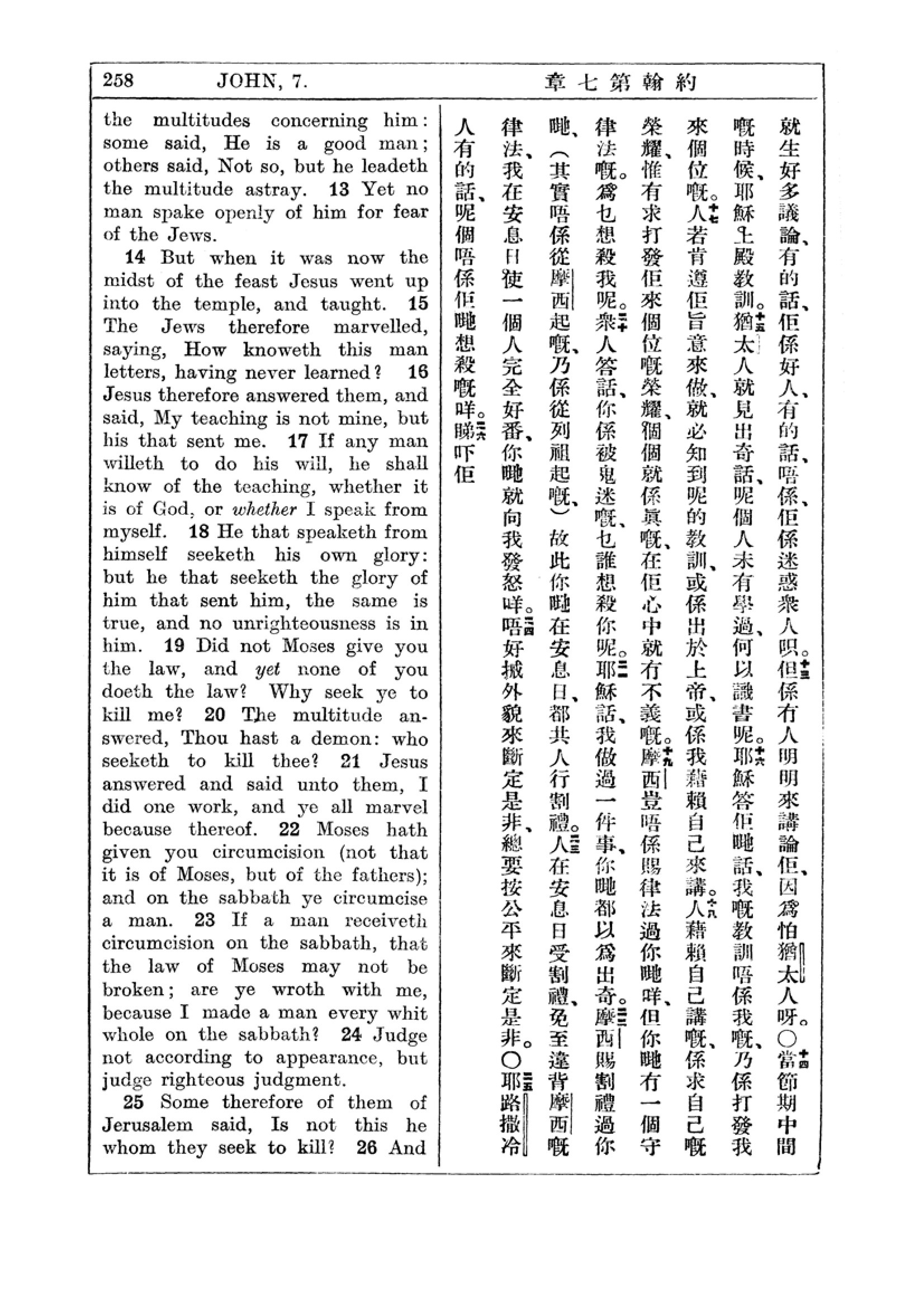 1927年新約全書(中英對照) 約翰福音 7 章 12 節到 7 章 25 節