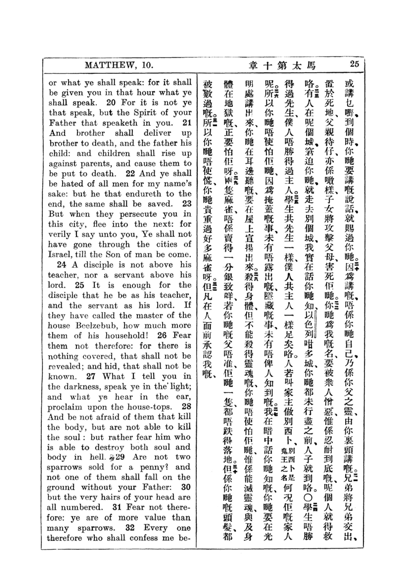1927年新約全書(中英對照) 馬太福音 10 章 20 節到 10 章 32 節