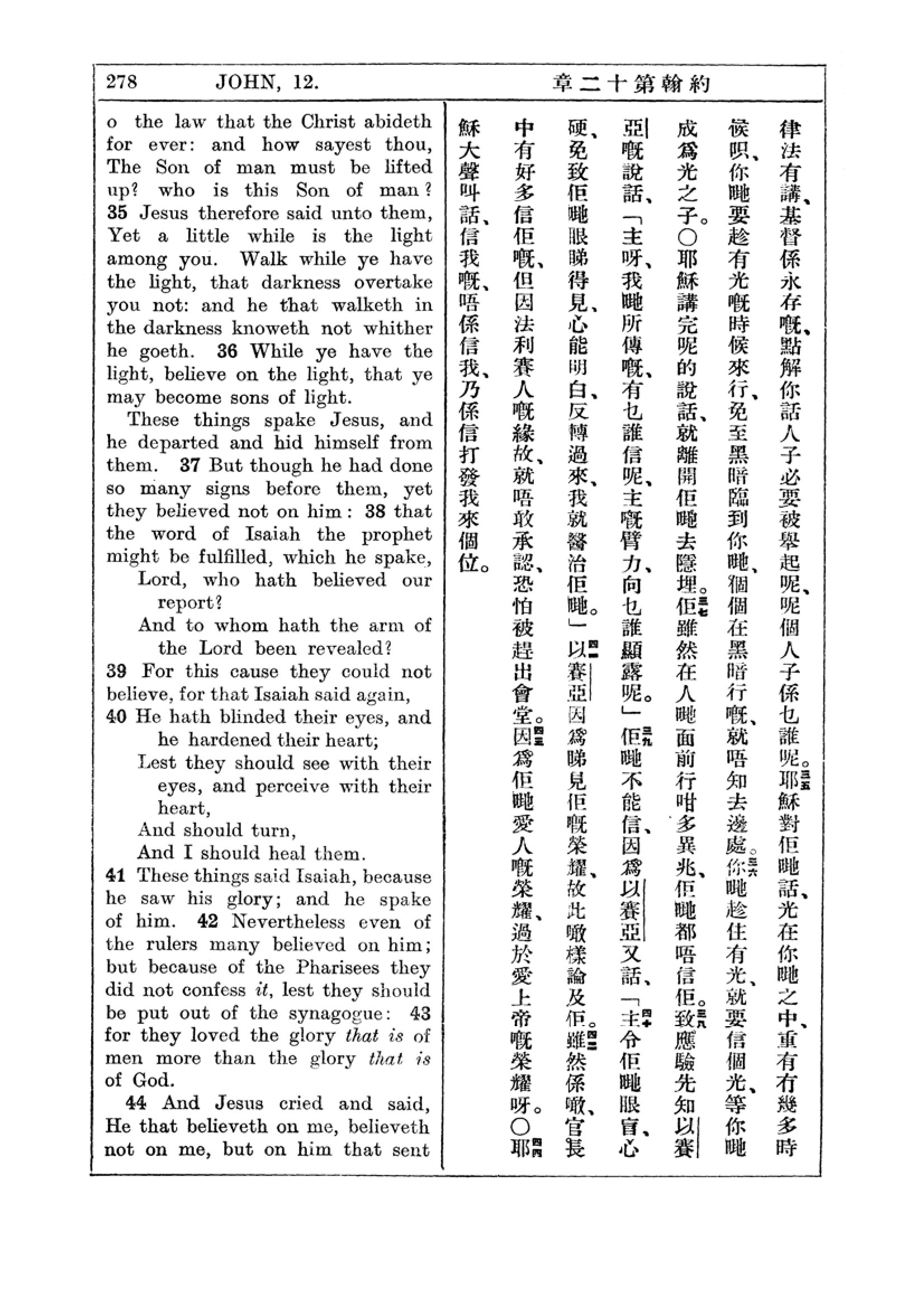 1927年新約全書(中英對照) 約翰福音 12 章 35 節到 12 章 44 節