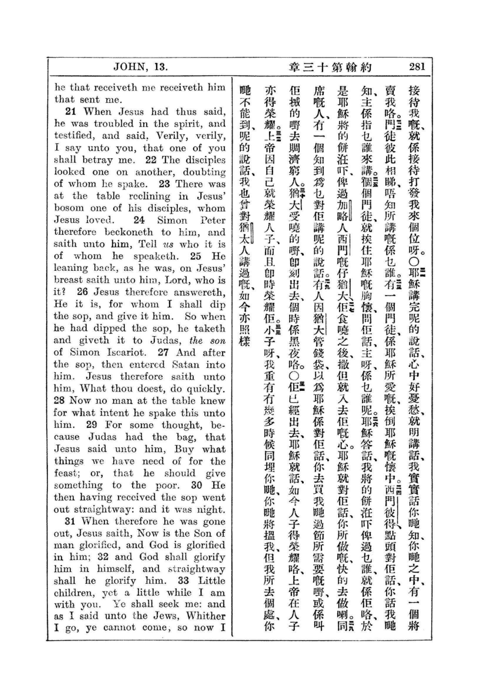 1927年新約全書(中英對照) 約翰福音 13 章 21 節到 13 章 33 節