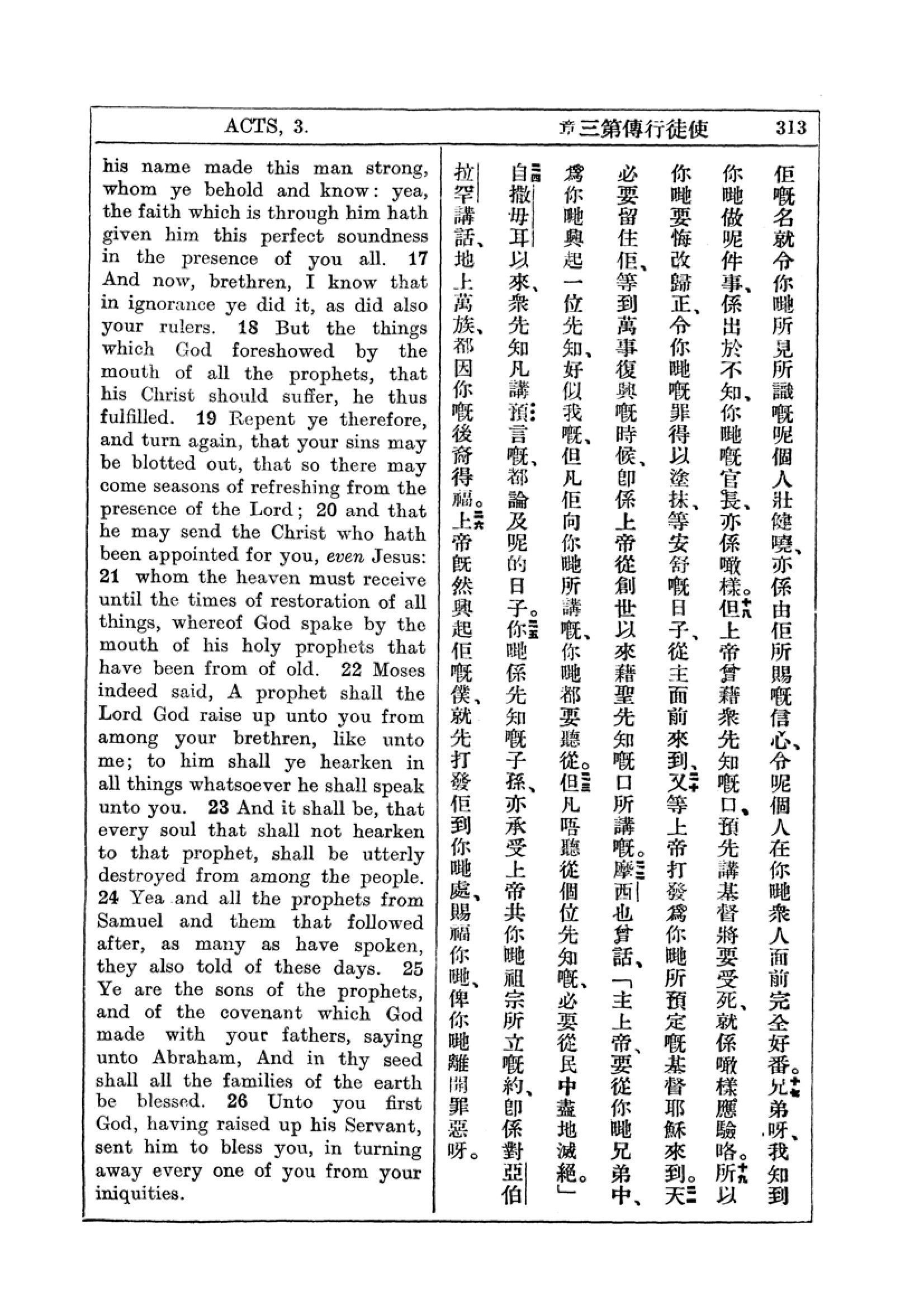 1927年新約全書(中英對照) 使徒行傳 3 章 16 節到 3 章 26 節