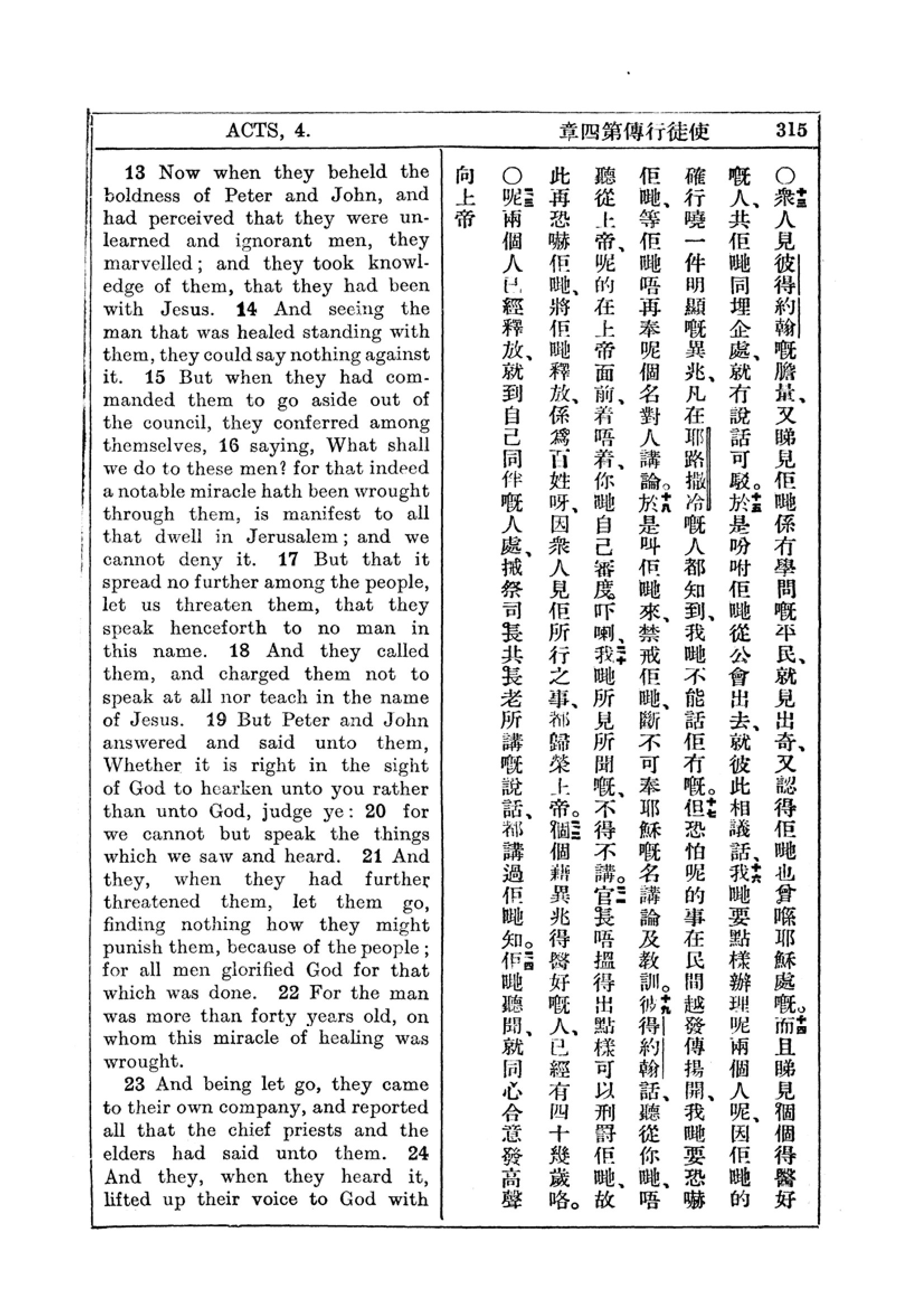 1927年新約全書(中英對照) 使徒行傳 4 章 13 節到 4 章 24 節