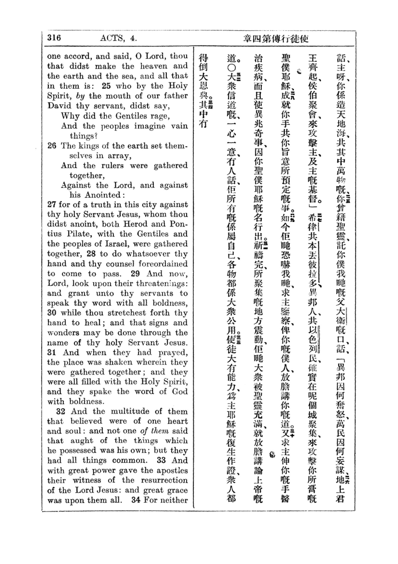 1927年新約全書(中英對照) 使徒行傳 4 章 25 節到 4 章 33 節