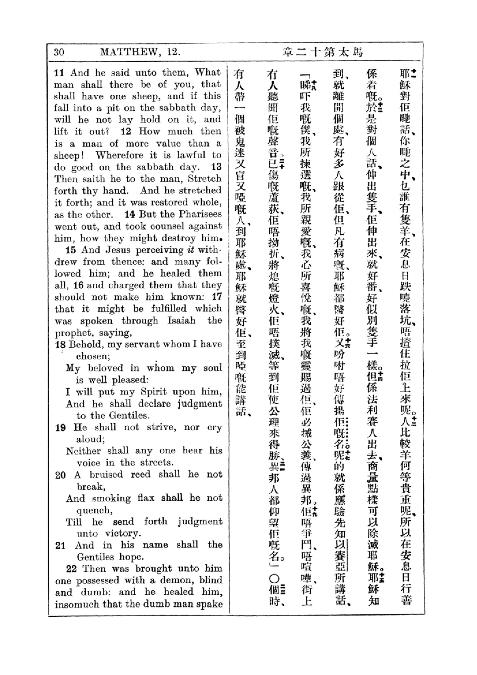 1927年新約全書(中英對照) 馬太福音 12 章 11 節到 12 章 22 節